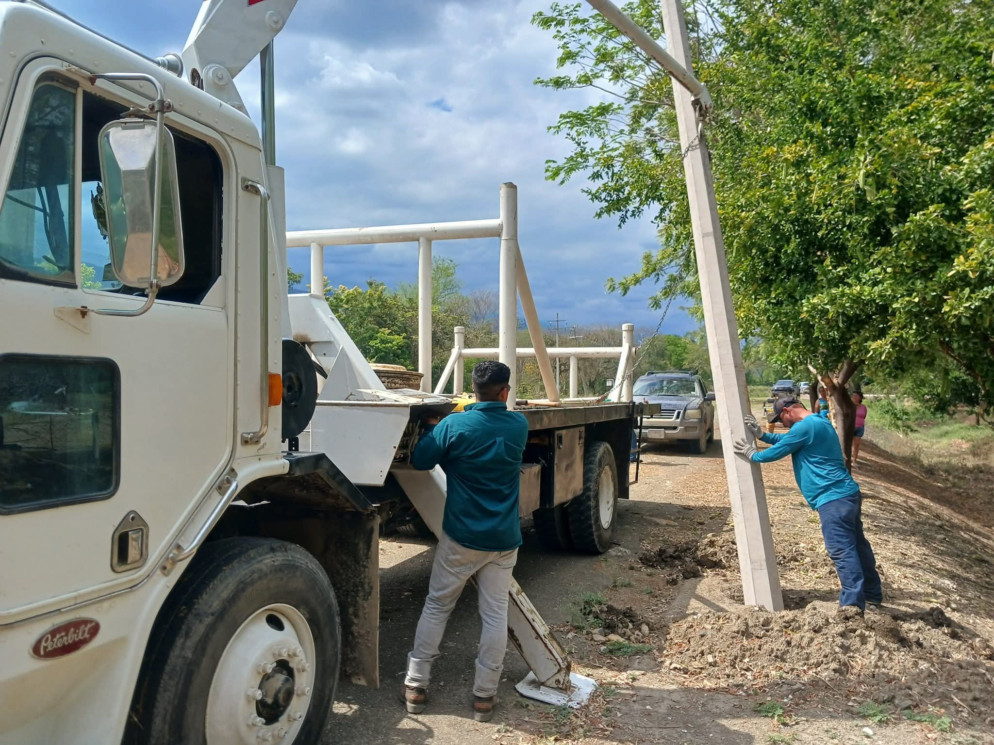 Gómez Farías,Tam.-El presidente municipal Frank de León supervisa de cerca la instalación de la postería para el alumbrado público en el ejido Plan de Guadalupe, reafirmando su compromiso con el desarrollo y bienestar de las comunidades rurales.
