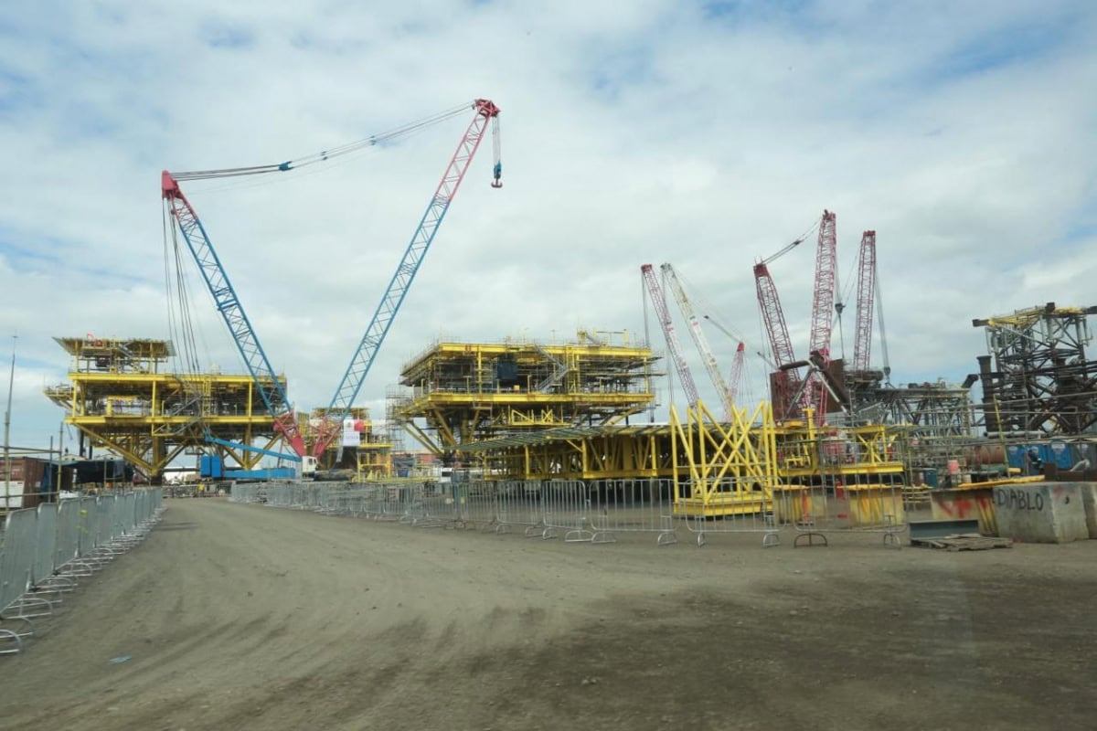 Durante el evento celebrado en el Patio Industrial de Pueblo Viejo, Veracruz, y junto a la gobernadora anfitriona Rocío Nahle García, al pie de las nuevas plataformas petroleras marinas construidas por Petróleos Mexicanos, la presidenta Claudia Sheinbaum destacó la presencia de Américo Villarreal, a quien consideró «un hombre nacionalista y visionario».
