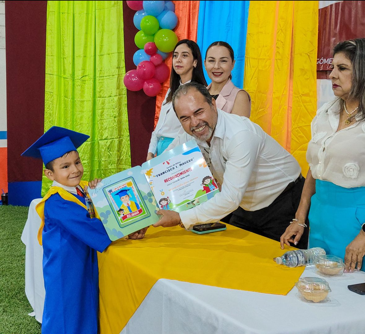 Gómez Farías,Tam.-Con un padrino de lujo contaron los alumnos del preescolar “Francisco I. Madero”, ubicado en la cabecera municipal de Gómez Farías, al recibir la visita del presidente municipal Frank de León, quien acudió gustoso a la invitación para celebrar junto a los pequeños este importante logro académico.