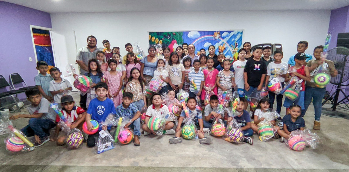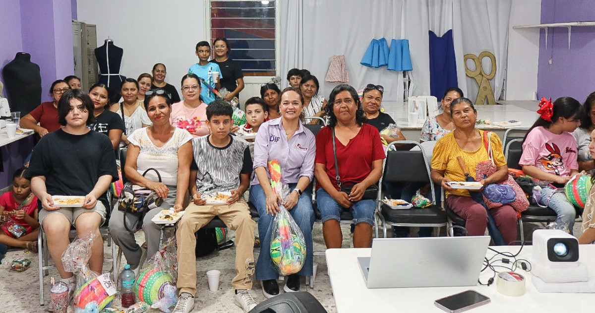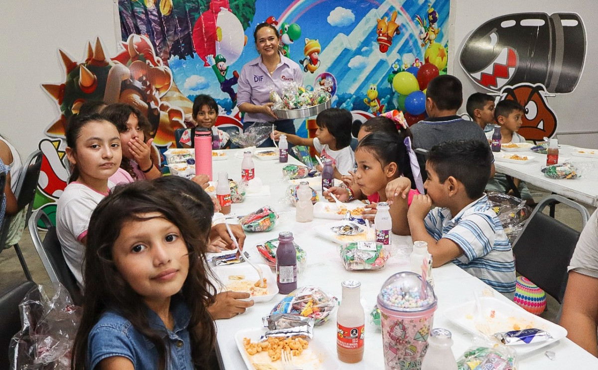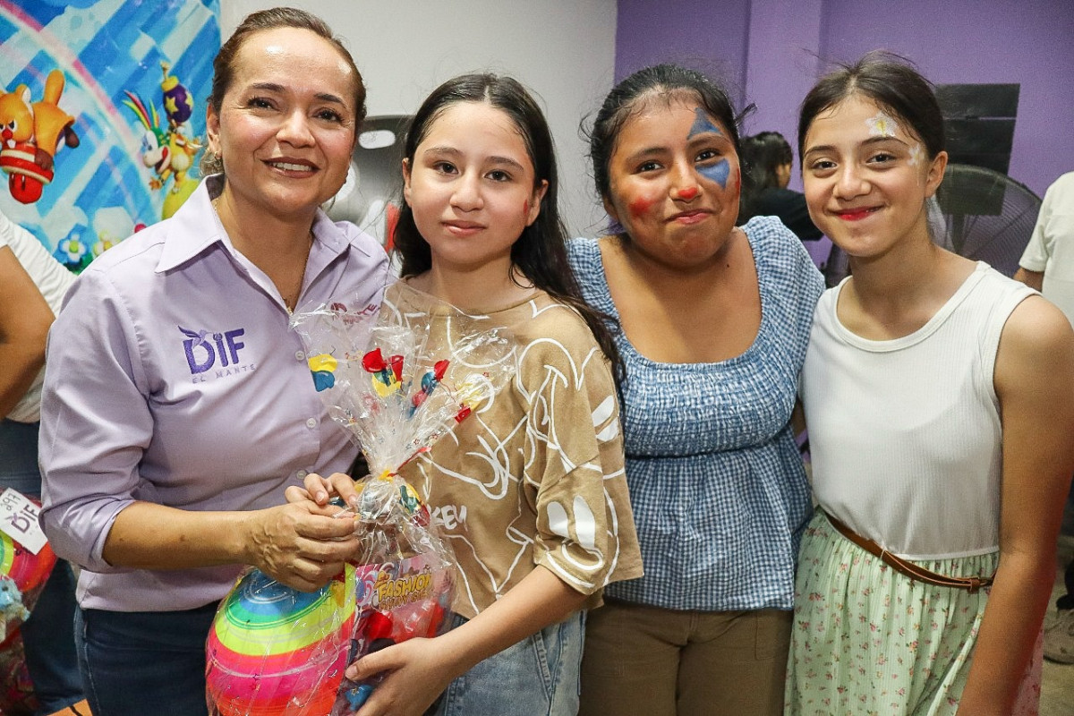 Junto a niñas y niños que asisten a clases de Inglés, Matemáticas, Español y Física en el CEDIF, la directora del sistema DIF El Mante convive en un día de fiesta donde reinó la alegría y regalos.