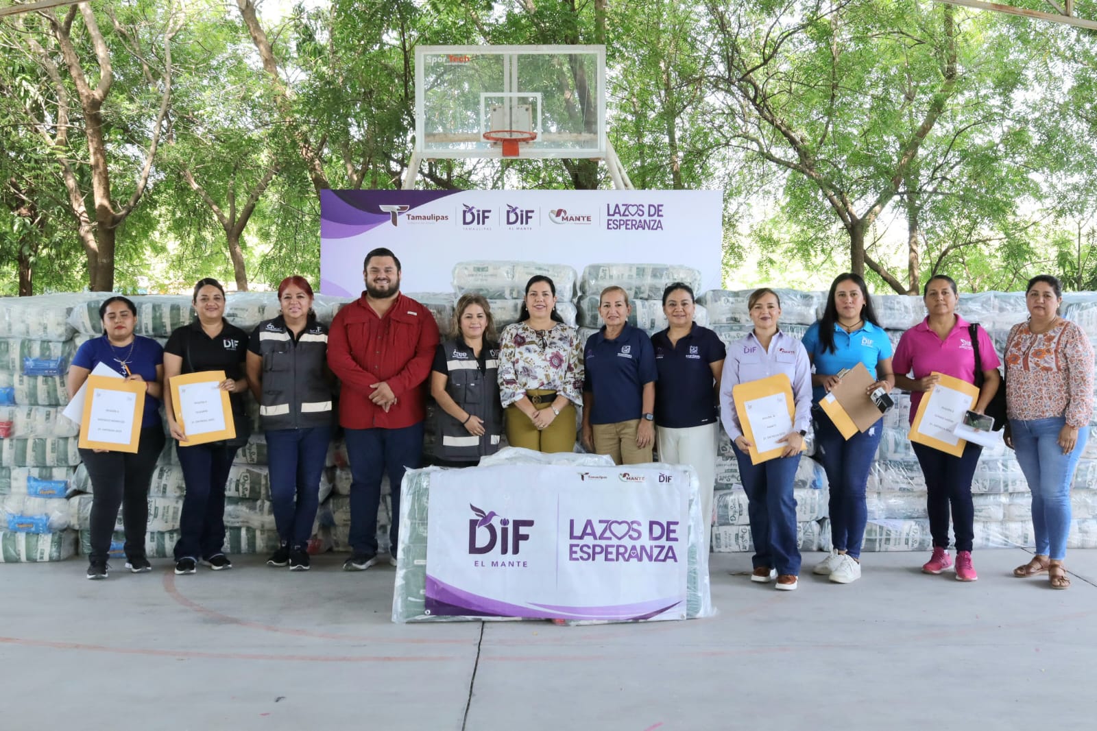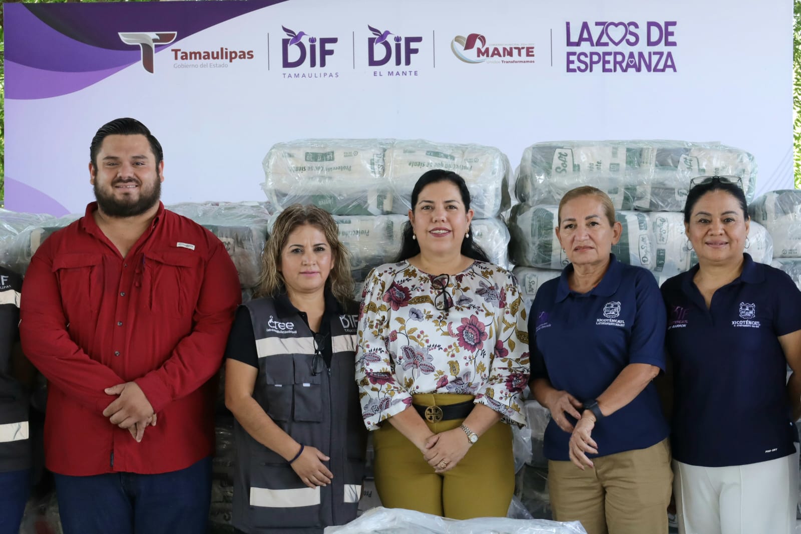 Los apapachos que la Dra.Maria Santiago de Villarrral Presidenta del Sistema DIF Tamaulipas envía, fueron recibidos por la Presidenta Municipal Patty Chio que agradeció la dotacion de 540 paquetes de pañales del programa «Lazos de Esperanza» que atiende a personas con discapacidad.