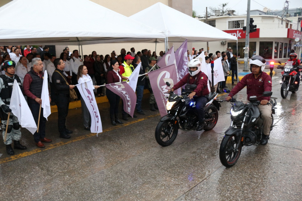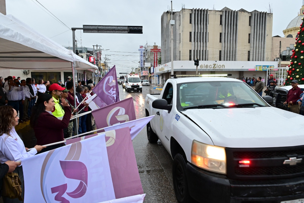 Acompañada por integrantes del cabildo, elementos de Seguridad, Protección Civil , Bomberos y Cruz Roja, la Presidenta Municipal Patty Chío dio el banderazo del operativo «Navidad Segura «.