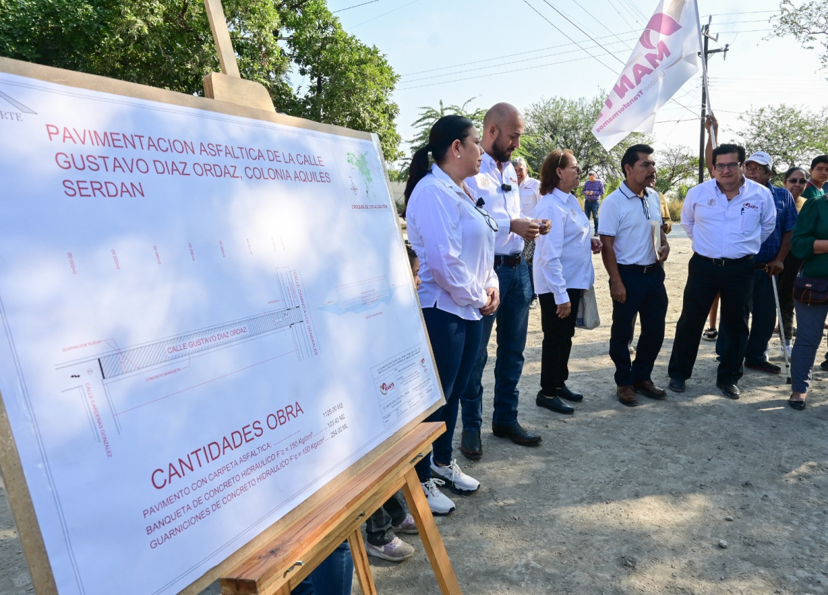 - Al Iniciar la pavimentación asfáltica de la calle Díaz Ordaz, en la Col. Aquiles Serdán, la alcaldesa recibe el agradecimiento de colonos
