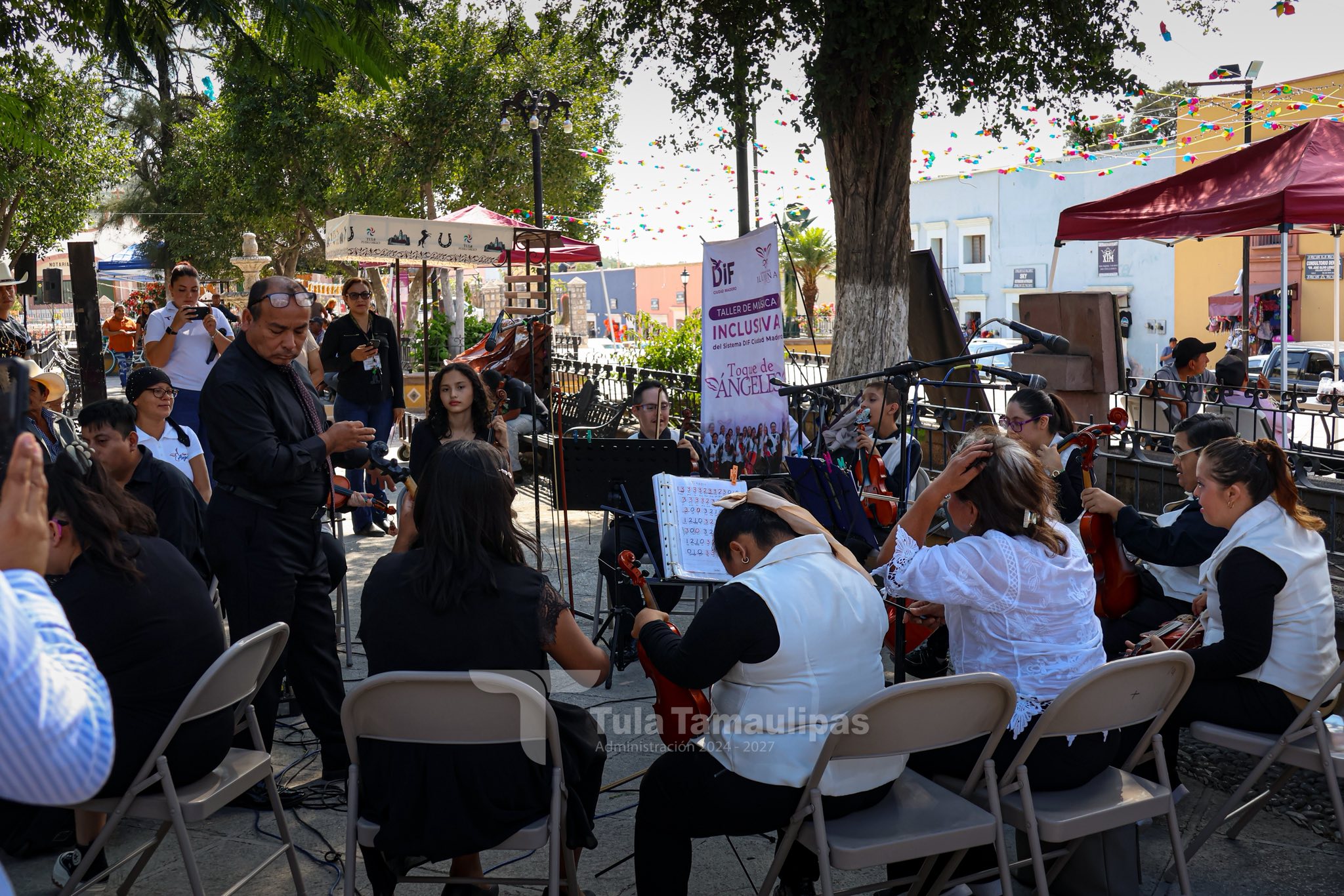 Exposición Fotográfica de Salvador Piña – Un recorrido visual por la esencia y belleza de nuestro municipio,Grupo de Cuerdas Inclusivo “Toque de Ángeles” – Emotiva participación que conmovió al público. , Danzas Monumental – Espectaculares cuadros coreográficos a cargo de los grupos de danza locale. , Trío Huasteco del Altiplano – Música tradicional que llenó de orgullo y alegría el ambiente,