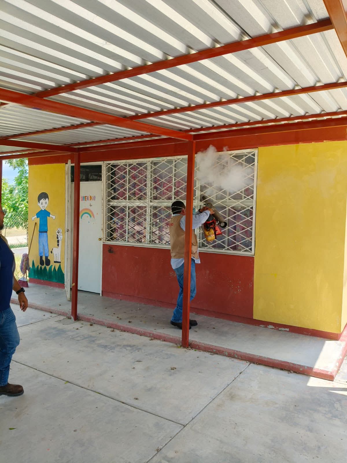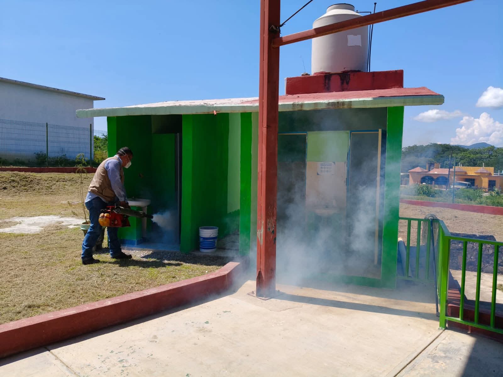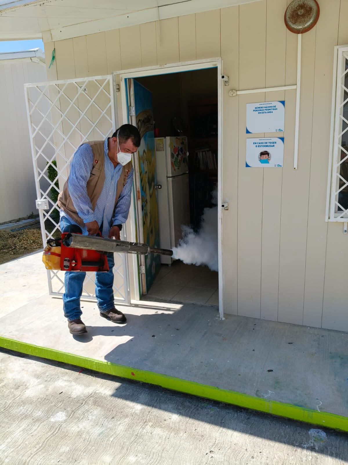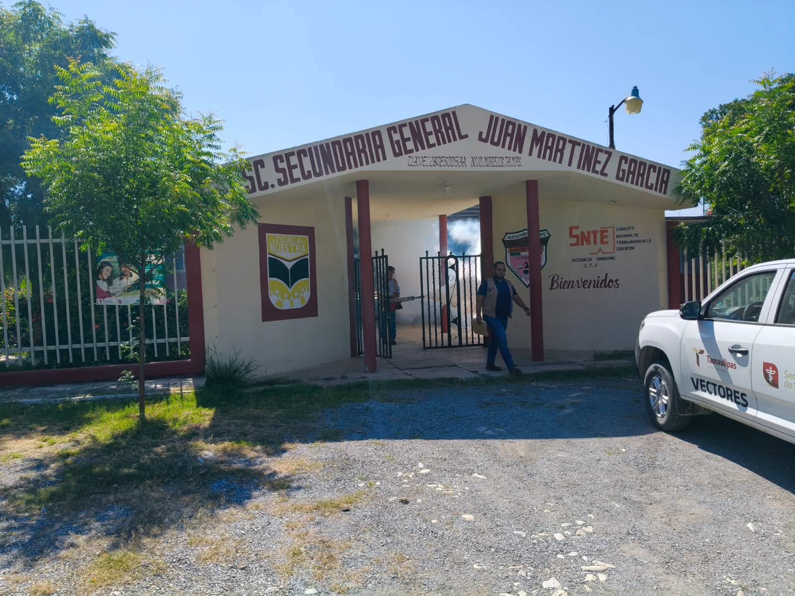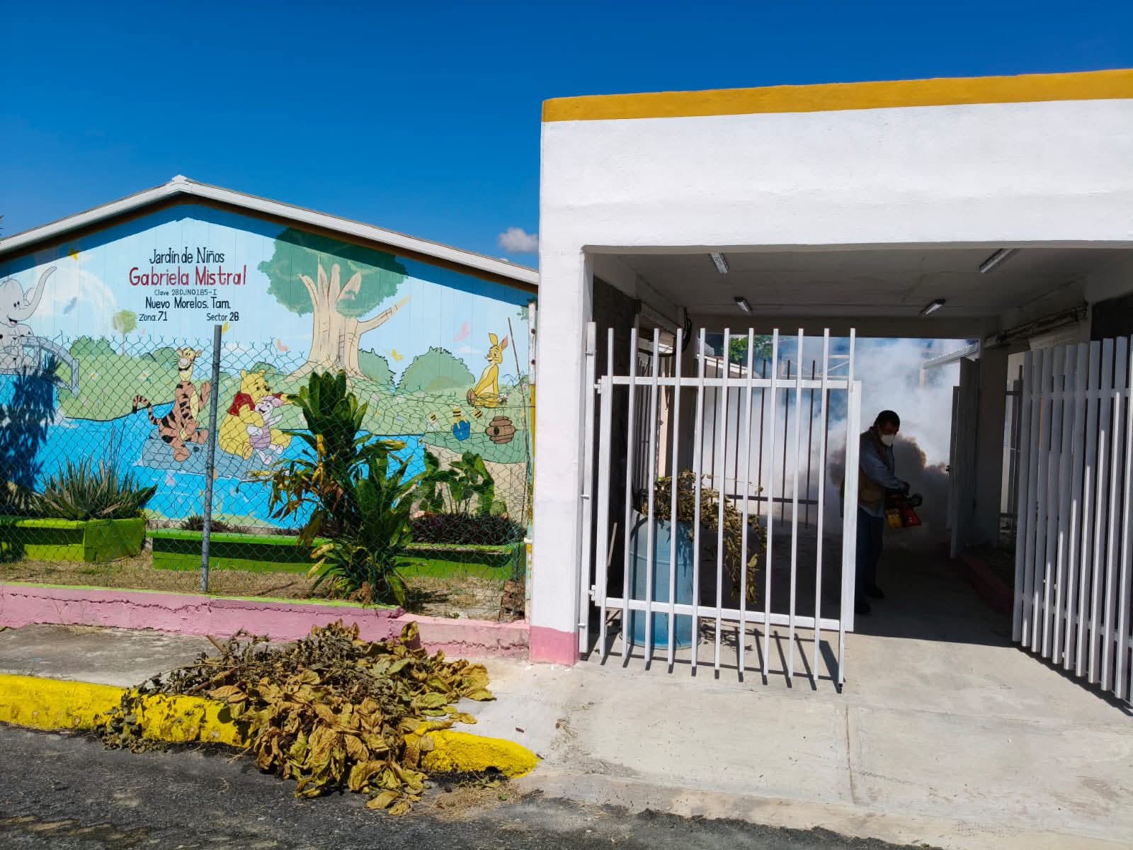 Nuevo Morelos,Tam.-El Departamento de Vectores de Cd. Mante, bajo la coordinación del Ing. Raúl Galván, en estrecha colaboración con el Ayuntamiento de Nuevo Morelos, encabezado por la alcaldesa Yaneth Nájera, llevó a cabo una intensa jornada de fumigación y control sanitario en diversas instituciones educativas del municipio.