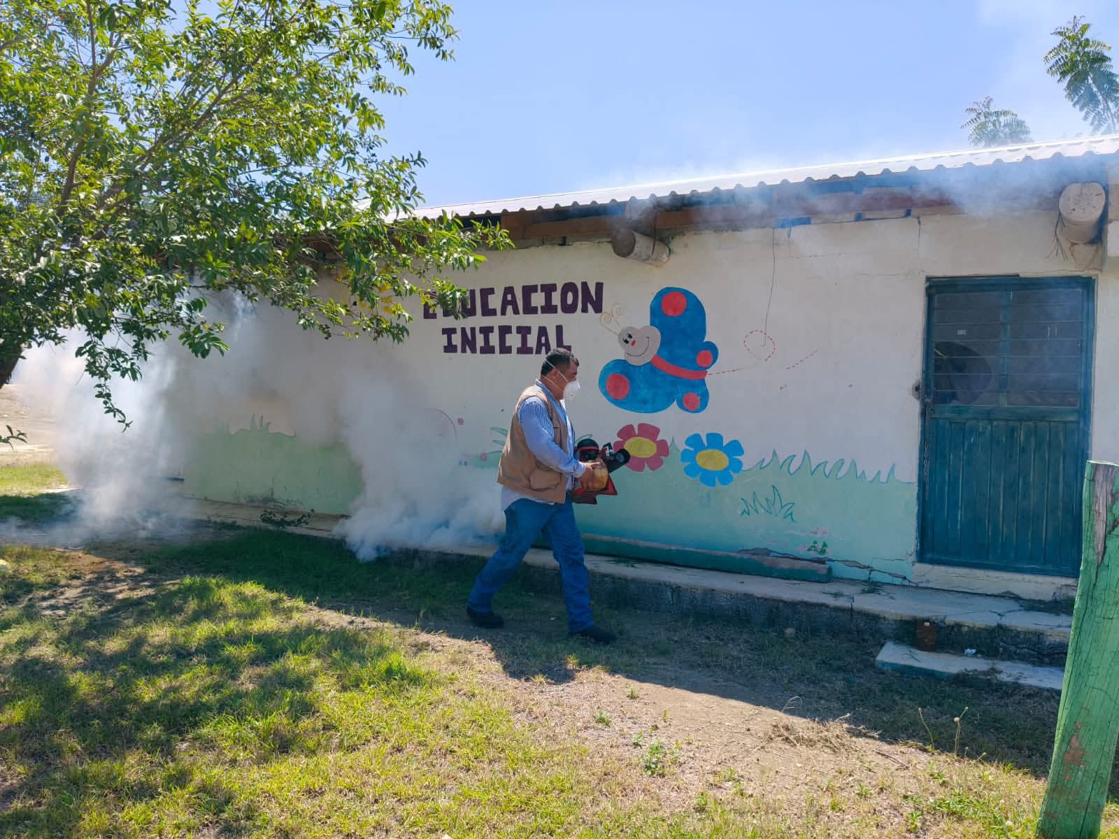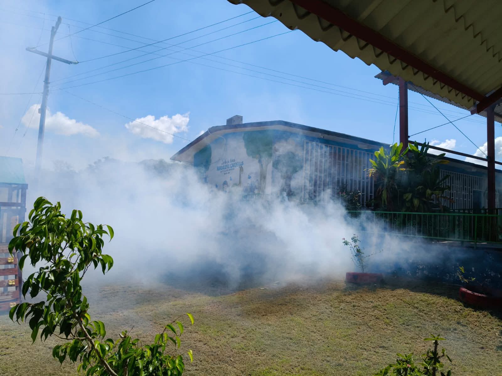 Previo a la fumigación, se contó con el valioso respaldo de madres, padres de familia y tutores, quienes participaron activamente en jornadas de limpieza, desmonte de maleza, recolección de basura y poda de árboles, creando así condiciones óptimas para que las brigadas pudieran trabajar de manera más efectiva.