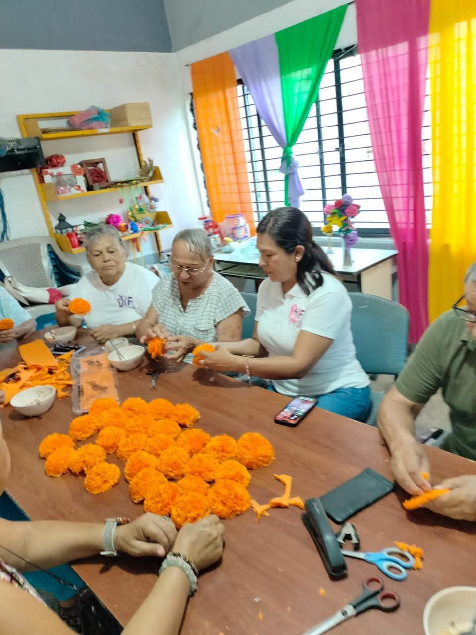 Durante esta actividad, los participantes elaboraron flores de cempasúchil, símbolo del amor y respeto hacia quienes nos antecedieron, fomentando la convivencia, la creatividad y el orgullo por nuestras raíces.