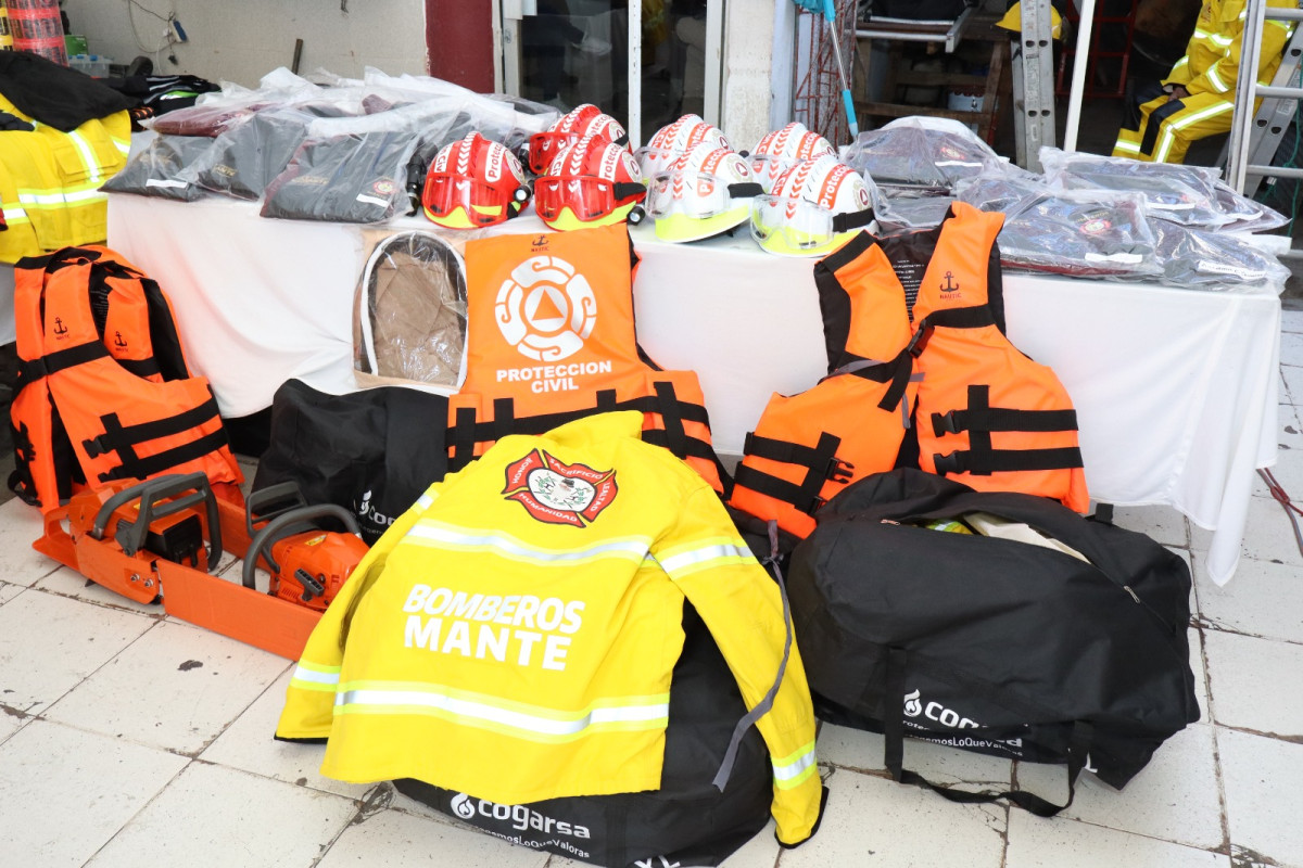 - Entrega herramientas de protección, rescate, cascos, uniformes operativos, mangueras , mochilas aspersoras, además de motosierras , escaleras y un vehículo de respuesta inmediata; todo ello para fortalecer a la corporación en la temporada de incendios.