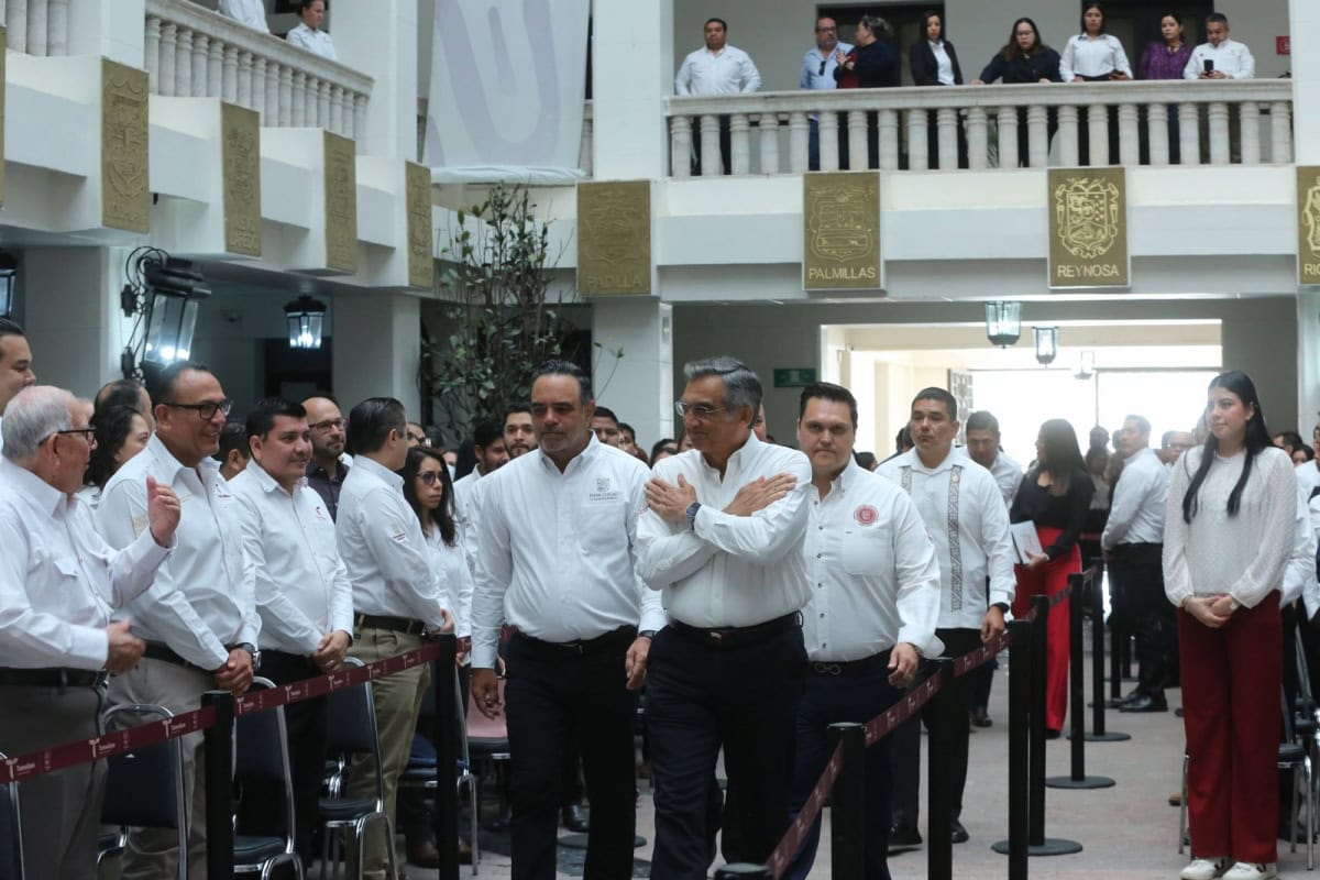 En esta ceremonia acompañaron al gobernador: Héctor Joel Villegas González, secretario general de Gobierno; Hernán de la Garza Tamez, presidente del Supremo Tribunal de Justicia; el general Enrique García Jaramillo, comandante de la 48 Zona Militar; el inspector en jefe Fernando Meneses Martínez, en representación de la Coordinación Estatal de la Guardia Nacional; y Benjamín Hernández Rodríguez, secretario de Turismo del Estado, además de diputadas y diputados, integrantes del gabinete estatal y trabajadores del Gobierno del Estado.