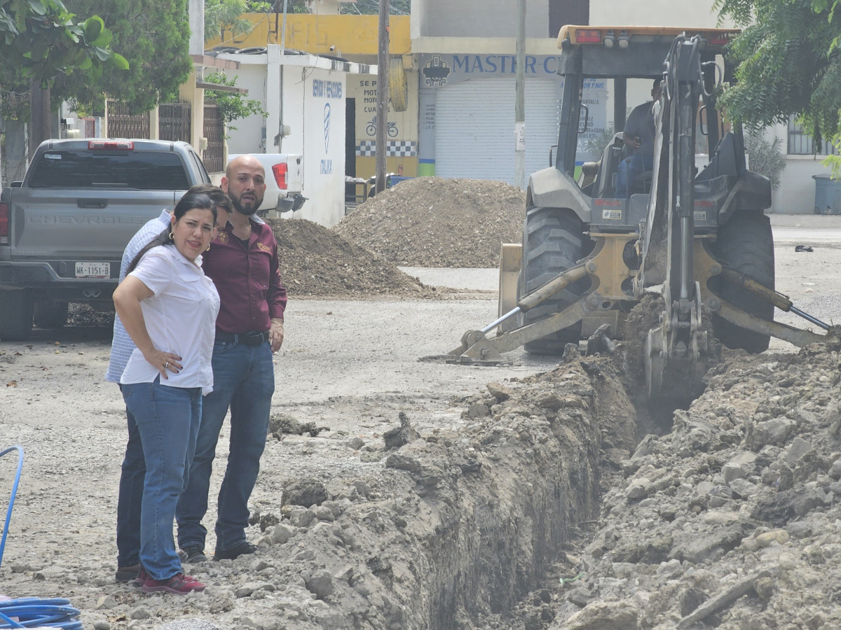 La Presidenta Municipal Patty Chío constató el avance que observa la obra que se ejecuta en la calle Refinería de la Col Azucarera y reiteró que la revisión de trabajos será constante.