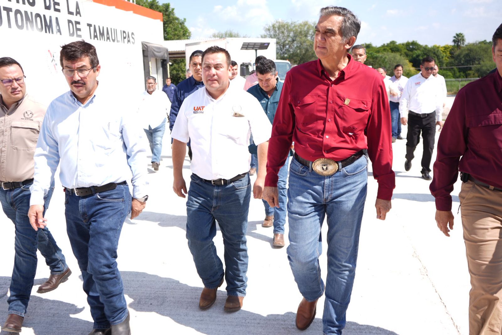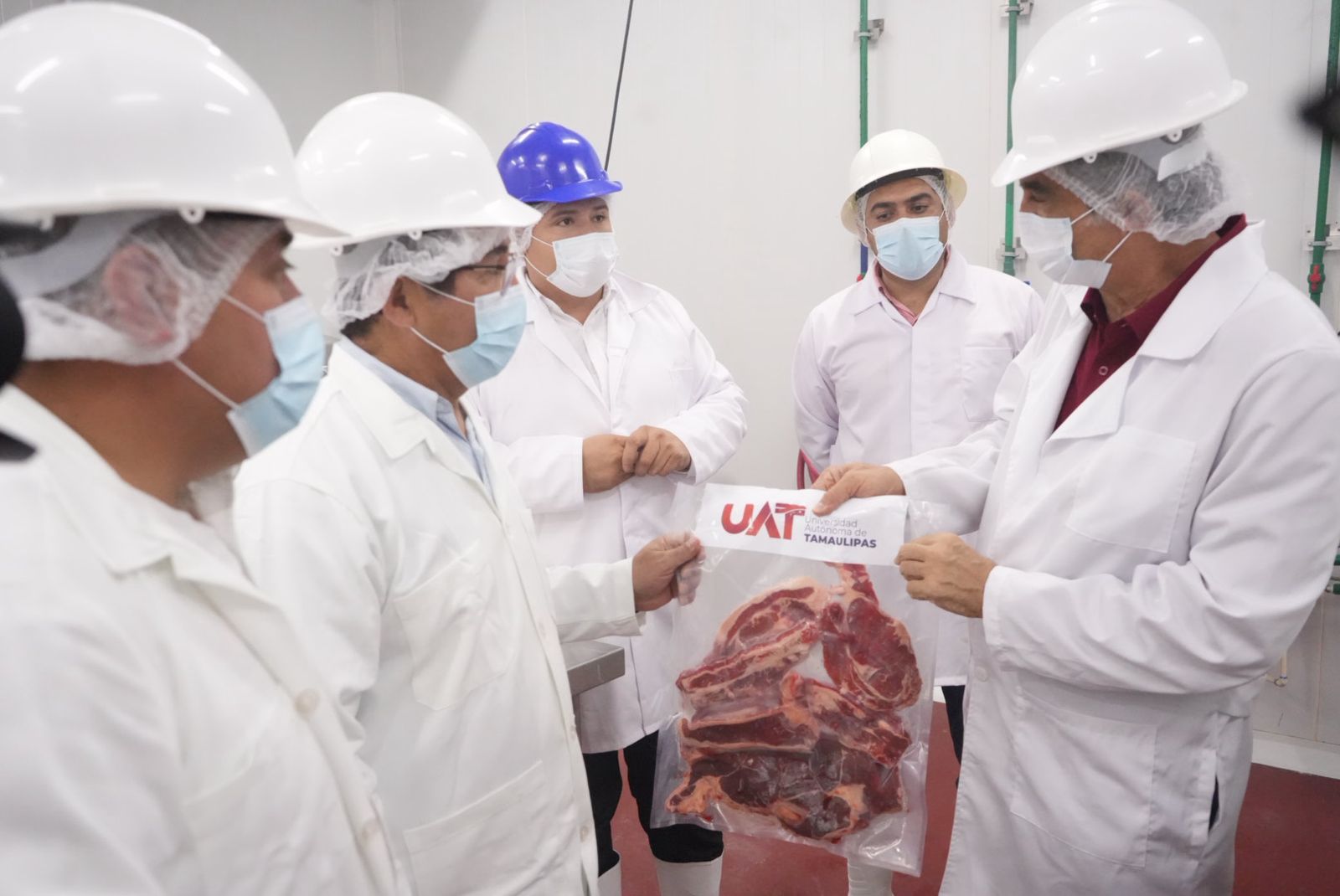 El gobernador Américo Villarreal Anaya visitó la Facultad de Medicina Veterinaria y Zootecnia de la Universidad Autónoma de Tamaulipas (UAT), dónde constató los avances en materia de equipamiento del Rastro Tipo Inspección Federal con que cuenta está casa de estudios.