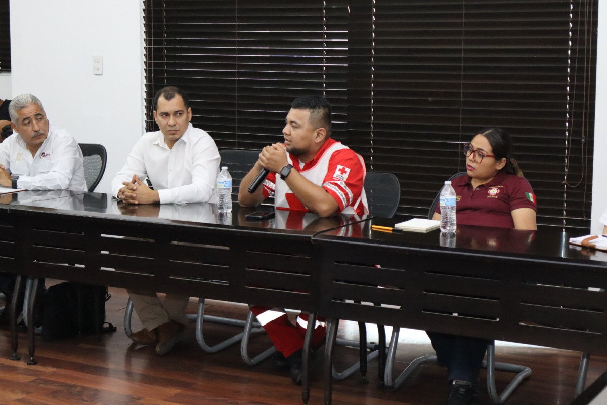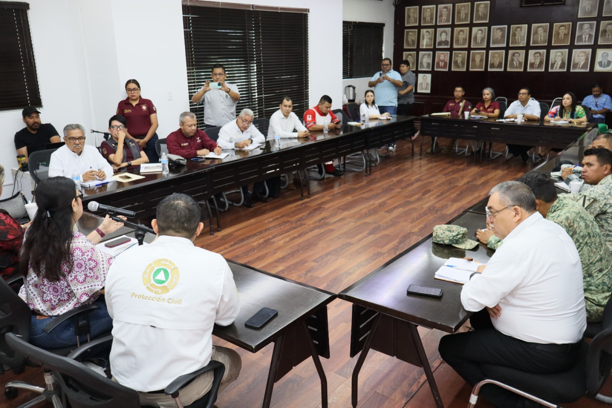 La Presidenta Municipal Patty Chío encabezó la reunión de trabajo en la que asistieron los integrantes del Comité de PC como es: Protección Civil regional y municipal, Secretaría de la Defensa Nacional, Guardias Nacional y Estatal, Cruz Roja, Tránsito, Hospital General, Jurisdicción Sanitaria y C5.