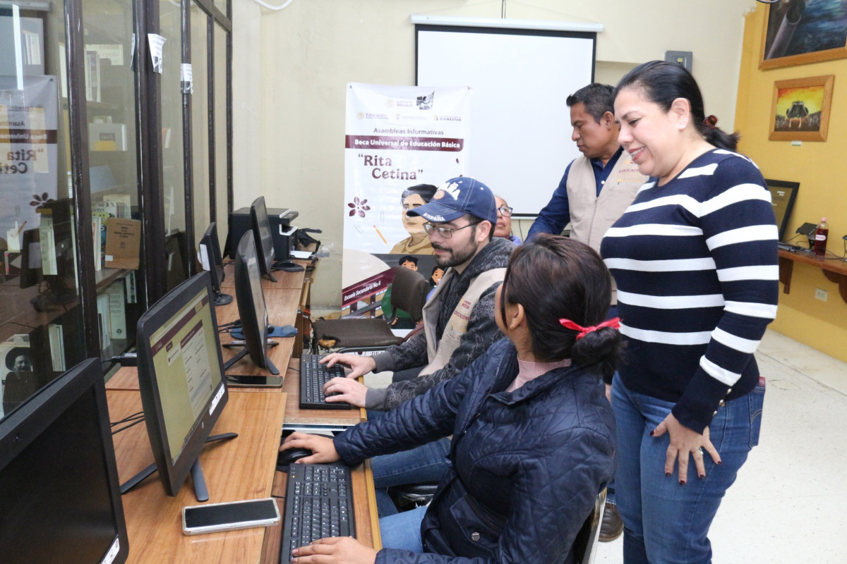 Acompañada por el coordinador regional de Becas del Bienestar Héctor Martínez González, la presidenta Municipal Patty Chío visitó esta mañana el módulo de atención gratuita ubicado en la Biblioteca Regional Praxedis Balboa Gojón, en donde se brinda el apoyo para el registro de la Beca Rita Cetina a niños de educación secundaria.
