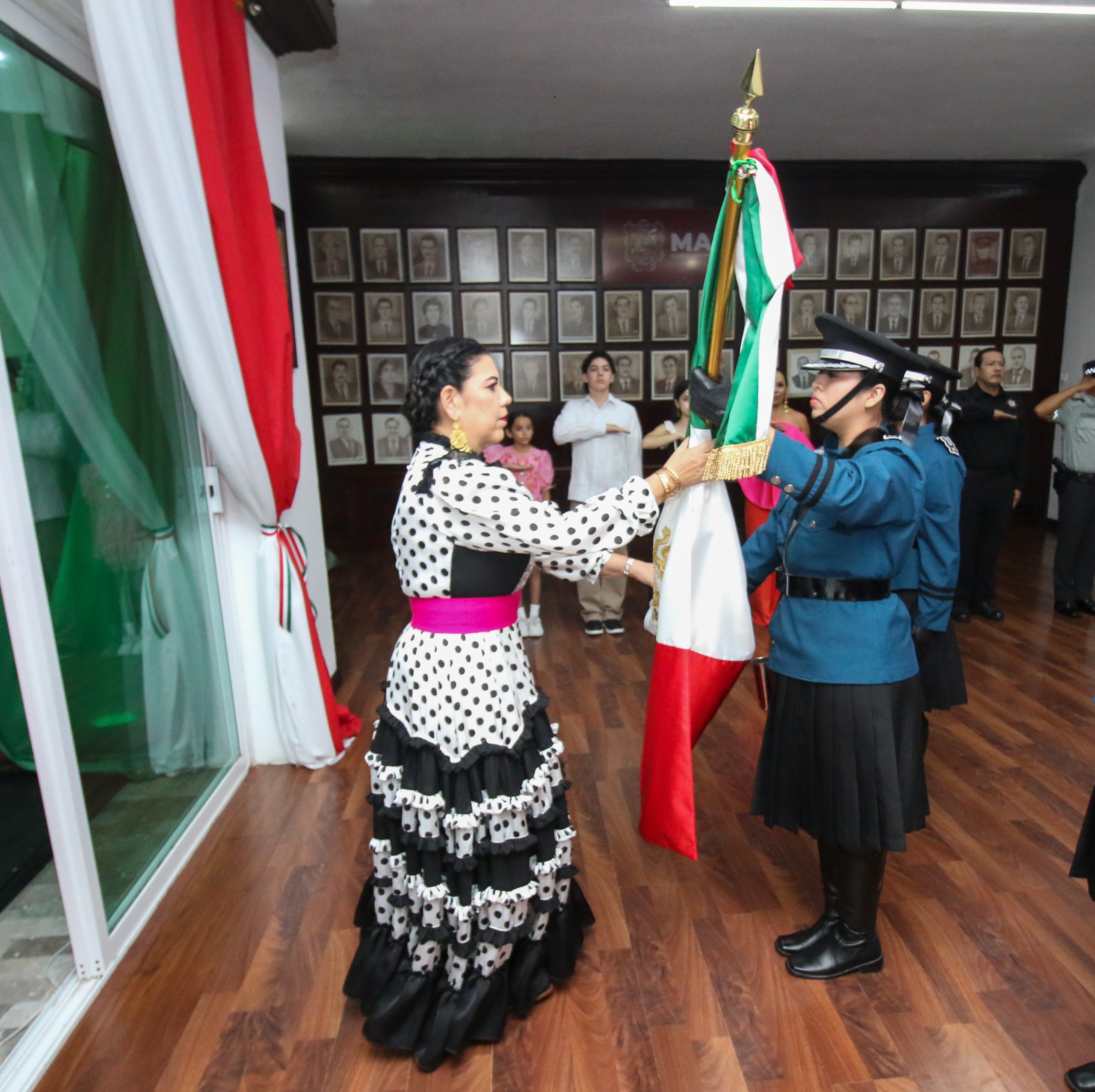 Al recibir de manos de la secretaria del Ayuntamiento Elizabeth Molina Leíja, la bandera nacional; la Presidenta Patty Chío encabezó la ceremonia cívica, para dirigirse al balcón y replicar la campana. Acto seguido hondeó la bandera nacional y proclamó la arenga.