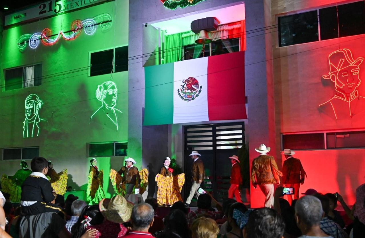 *La Presidenta Municipal Patty Chío encabezó esta noche la ceremonia cívica por el 215 aniversario del inicio de la guerra de independencia, ante cientos de familias mantenses vitoreó a los hombres y mujeres que lucharon por la primera transformación del país.
