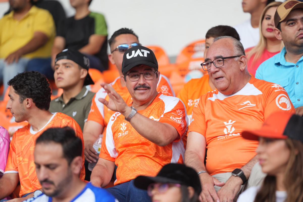 El rector de la UAT, Dámaso Anaya Alvarado, acudió al encuentro acompañado por autoridades y comunidad universitaria, mostrando el respaldo institucional al equipo y fortaleciendo el sentido de identidad que representa el fútbol en la comunidad y en la Universidad.