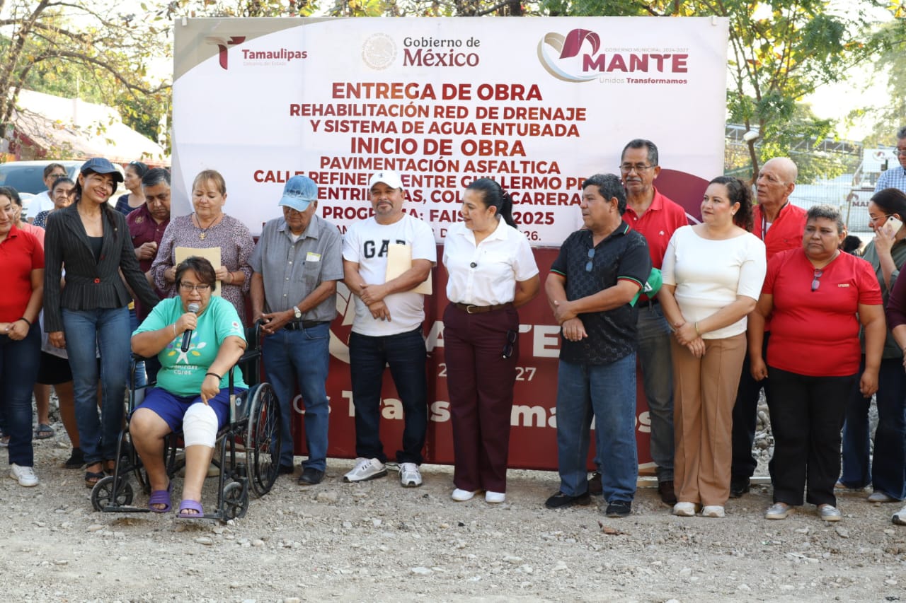 Al concluir la primera etapa de rehabilitación de la calle Refinería, el Gobierno Municipal impulsa obras integrales orientadas a fortalecer la conectividad y la movilidad en la colonia Azucarera, mediante la creación de circuitos viales que beneficien a este importante sector. Con la conclusión de los trabajos de introducción de la red de agua potable y drenaje sanitario, y al dar el banderazo de arranque a la etapa de pavimentación, la presidenta municipal Patty Chío cumple con una acción fundamental que permitirá avanzar en la conformación de un circuito vial, mejorando las condiciones de tránsito y la calidad de vida de las familias. Acompañada por vecinas y vecinos beneficiados, así como por síndicos y regidores, la alcaldesa realizó la inauguración de esta primera etapa de la obra y dio inicio a la siguiente fase, la cual contribuirá a una movilidad más segura y ordenada en la zona. Durante su mensaje, la presidenta municipal destacó que su administración trabaja para garantizar servicios básicos dignos y calles más seguras para todas las familias. Señaló que el desarrollo de obras por etapas permite consolidar proyectos duraderos que responden de manera real a las necesidades de la ciudadanía. “Trabajar por etapas nos permite sentar bases sólidas para obras duraderas que verdaderamente transformen el entorno y generen bienestar social”, afirmó Patty Chío, reiterando el compromiso de su gobierno con el impulso de infraestructura que mejore la calidad de vida de las y los mantenses. Asimismo, agradeció la participación del Comité Social de Obra, cuyo acompañamiento y verificación fortalecen la transparencia y el correcto desarrollo de los trabajos. En representación de las y los vecinos, la secretaria del Comité Social de Obra, Lidia Carranza Cárdenas, agradeció la presencia de la alcaldesa y del Cabildo, destacando que esta obra atiende una demanda prioritaria de las familias, además de que la futura pavimentación permitirá contar con accesos dignos para las y los estudiantes de los planteles educativos del sector. Esta acción es posible gracias al respaldo del gobernador del estado, Américo Villarreal Anaya, y de la presidenta de México, Claudia Sheinbaum Pardo, quienes impulsan proyectos que promueven el desarrollo y el bienestar de las familias mantenses. El Gobierno Municipal reiteró el llamado a continuar trabajando en unidad, sumando esfuerzos entre ciudadanía y autoridades para construir las bases de la transformación de El Mante.