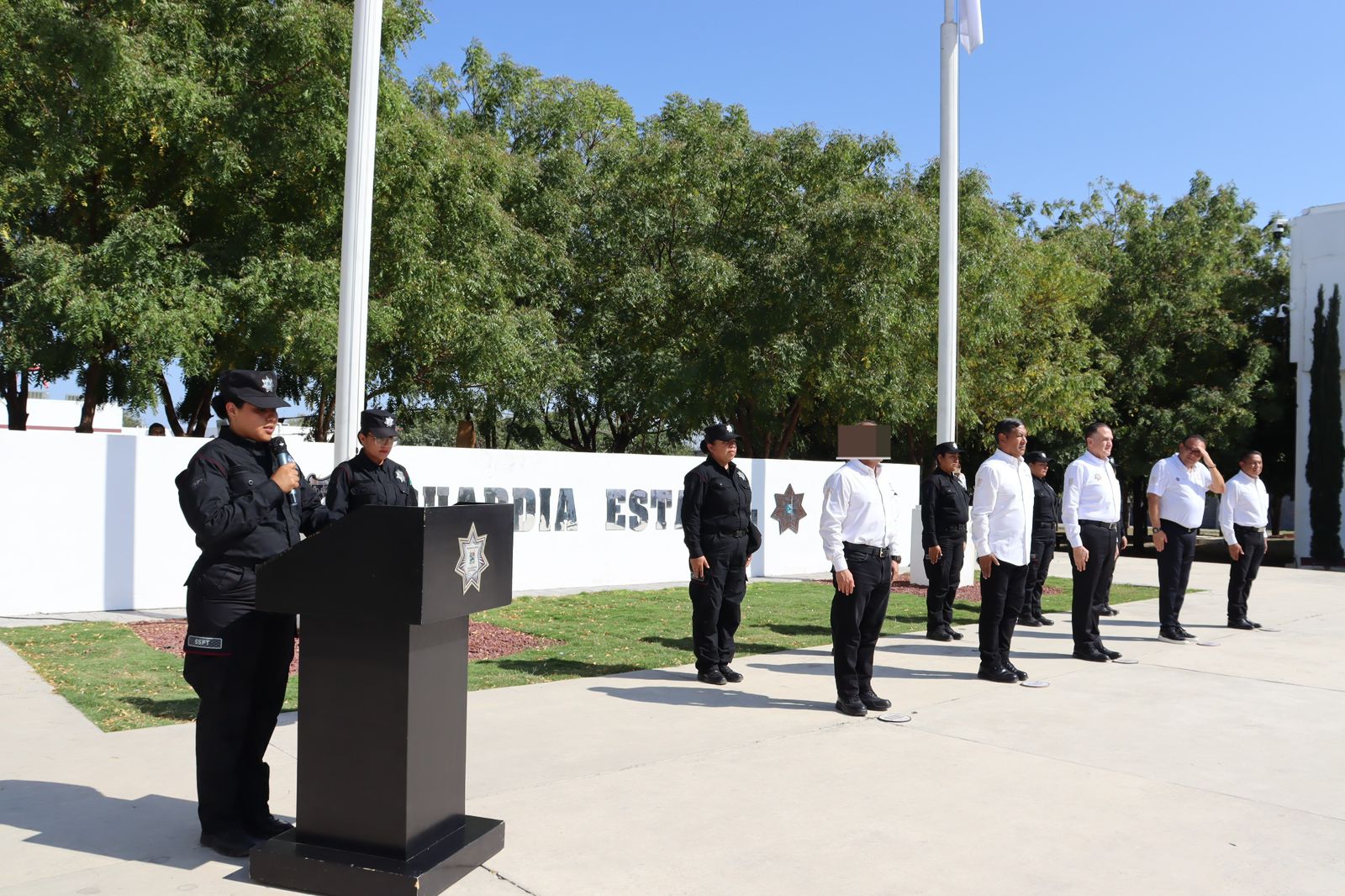 La ceremonia se llevó a cabo en la explanada del Complejo Estatal de Seguridad Pública y estuvo encabezada por el subsecretario de Operaciones de la Guardia Estatal, Enrique Dena Salgado, quien reconoció el esfuerzo del personal de la Guardia Estatal, Dirección de Tránsito Estatal y Cuerpos de Vigilancia, Custodia y Seguridad por cumplir con la totalidad del programa establecido.