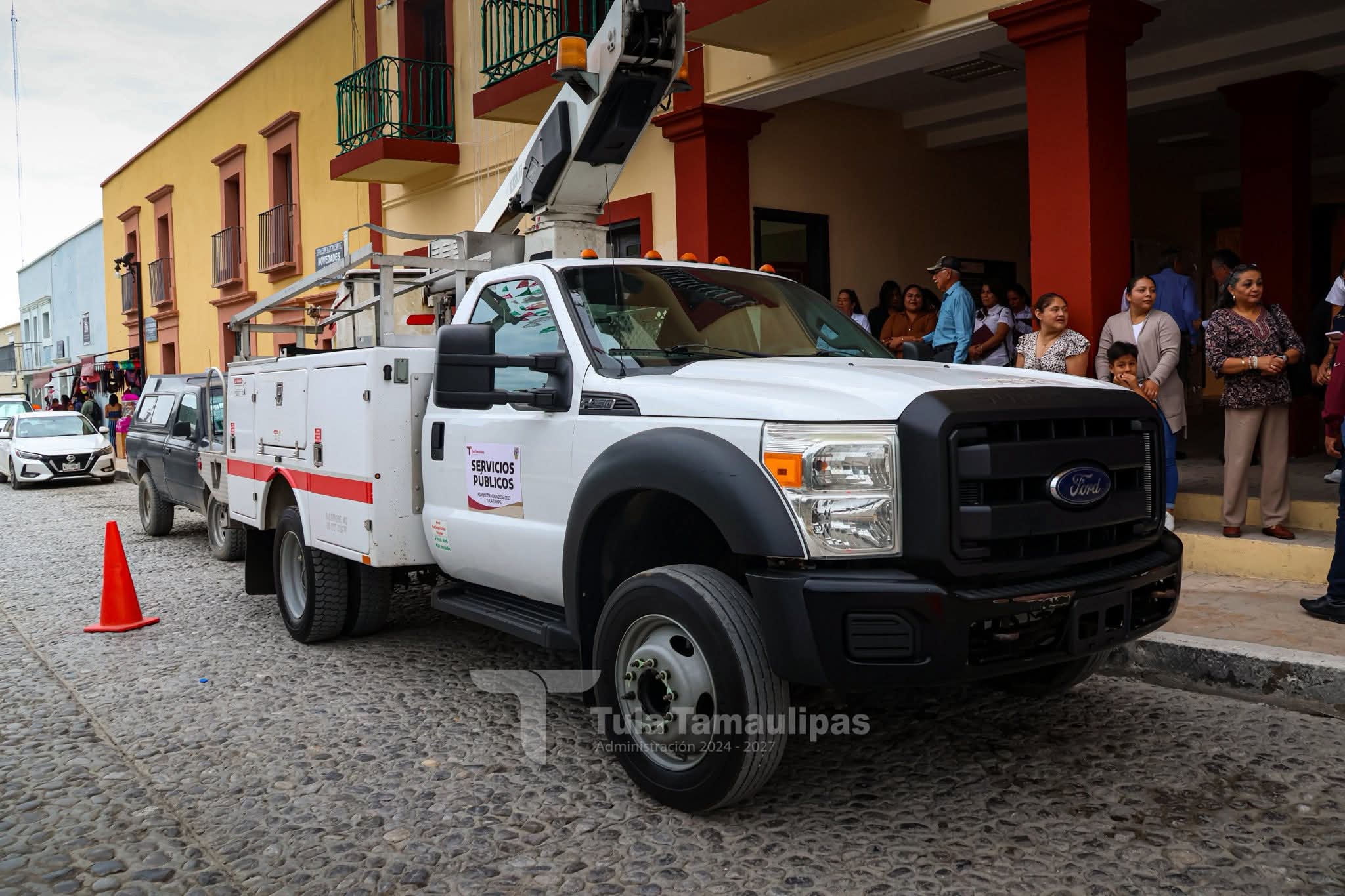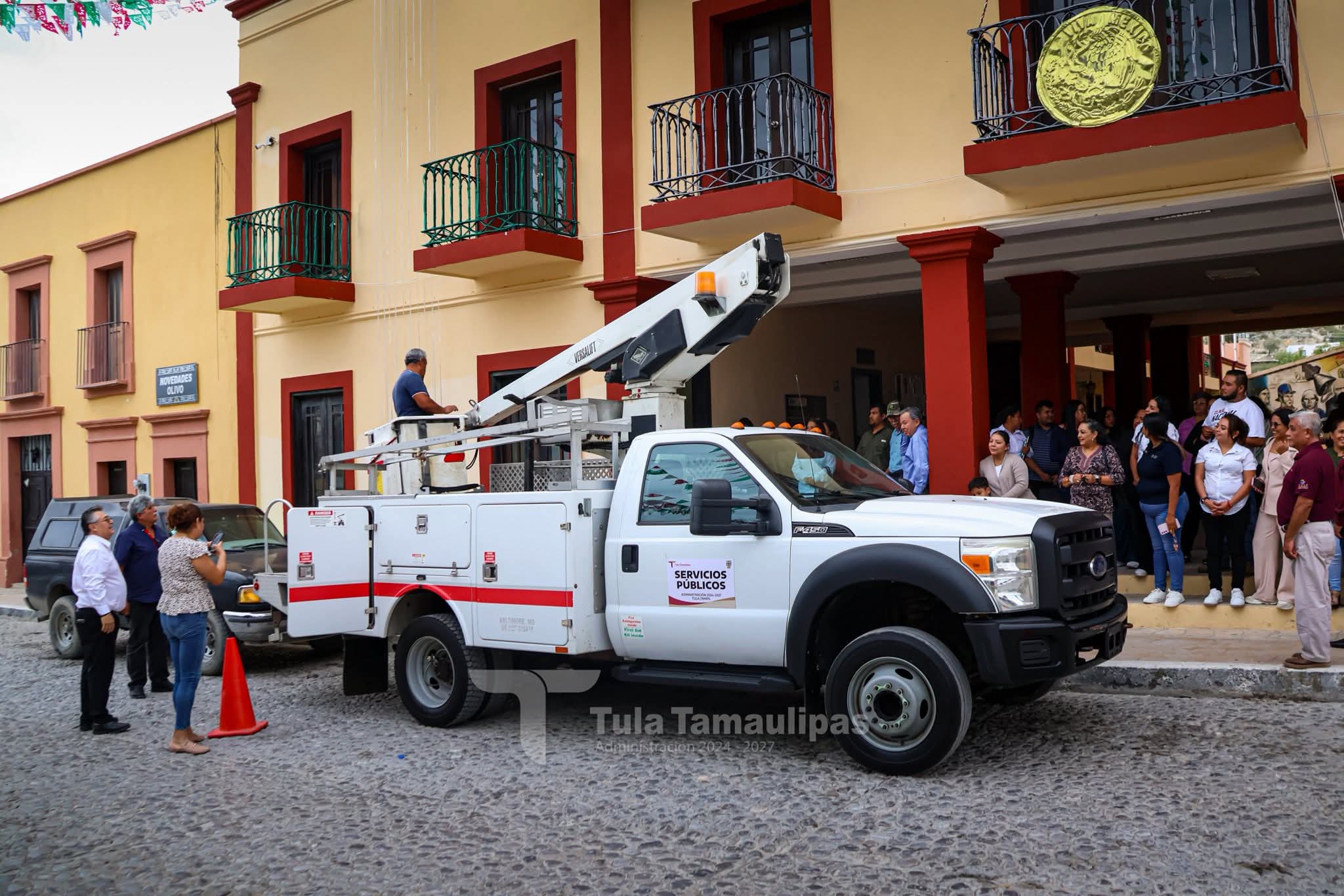 Tula ,Tam.-El H. Ayuntamiento de Tula, Tamaulipas 2024–2027 que preside el presidente municipal René Lara Cisneros reafirma su compromiso con la mejora continua de los servicios públicos al realizar la entrega oficial de una grúa de canastilla, una herramienta indispensable que permitirá reforzar las labores que diariamente desempeñan las áreas de Obras Públicas y Servicios Públicos.