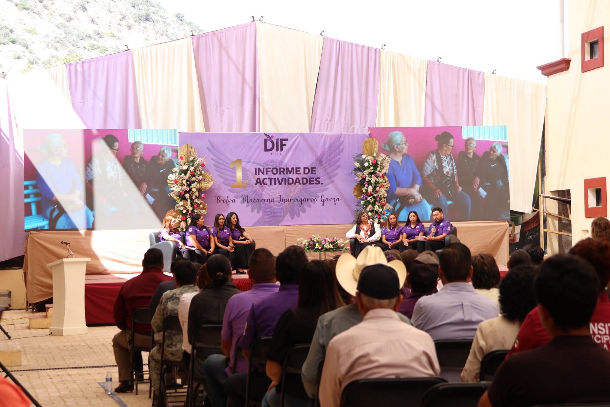Tula ,Tam.-El Presidente René Lara Cisneros expresa su más sincera felicitación a la Lic. Macarena Inurrigarro Garza, Presidenta del Sistema DIF Tula, por la presentación de su primer informe de actividades al frente de esta noble institución.