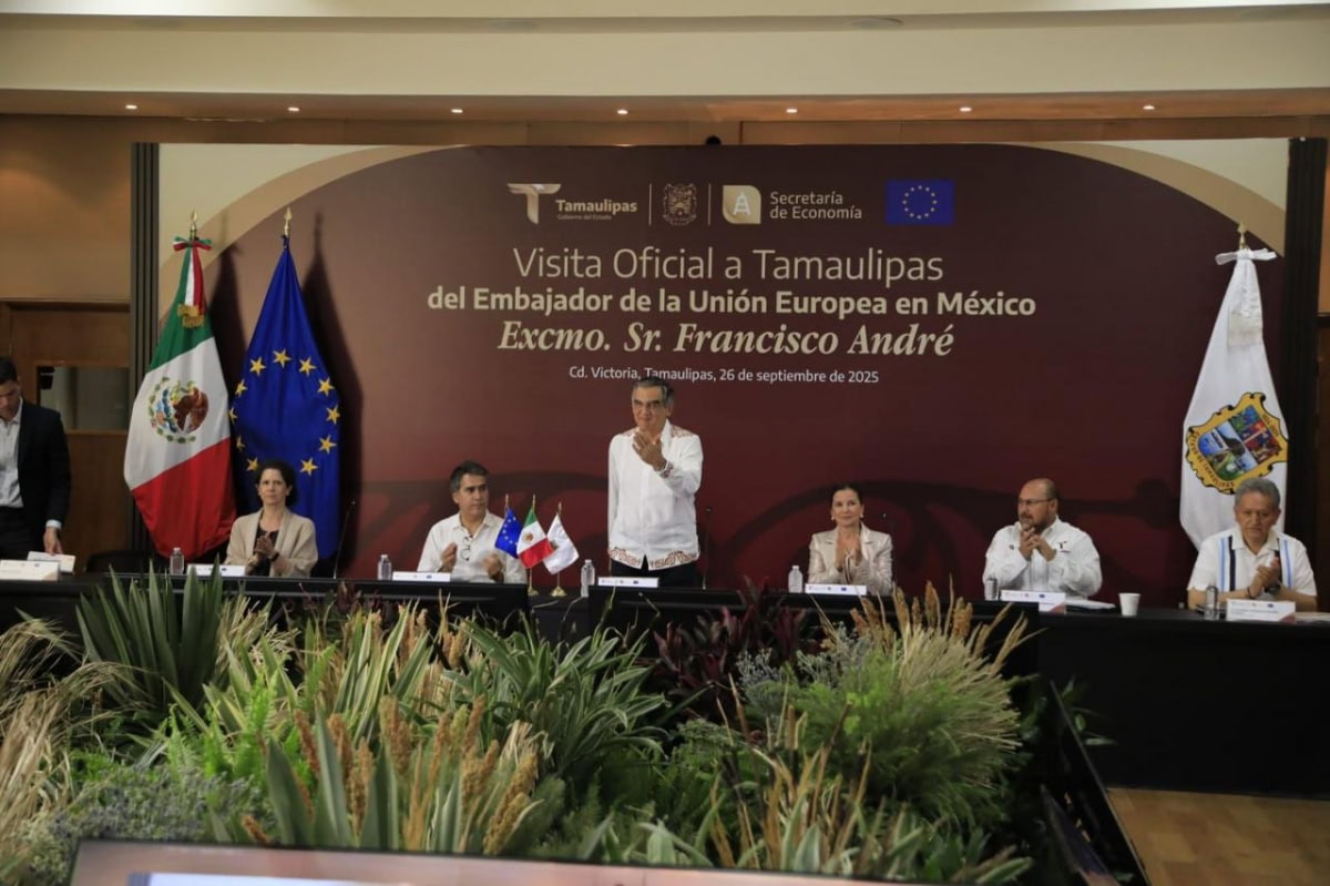 Destacó además que la Unión Europea es el segundo socio comercial de México y el segundo inversor en Tamaulipas, lo que abre nuevas oportunidades en sectores como agroindustria, manufactura y energías limpias. En este contexto, señaló que la modernización del Acuerdo Global entre México y la Unión Europea permitirá explorar mercados europeos para productos emblemáticos tamaulipecos como la naranja, la miel y la cuera, que podrían posicionarse en un mercado de más de 450 millones de consumidores.