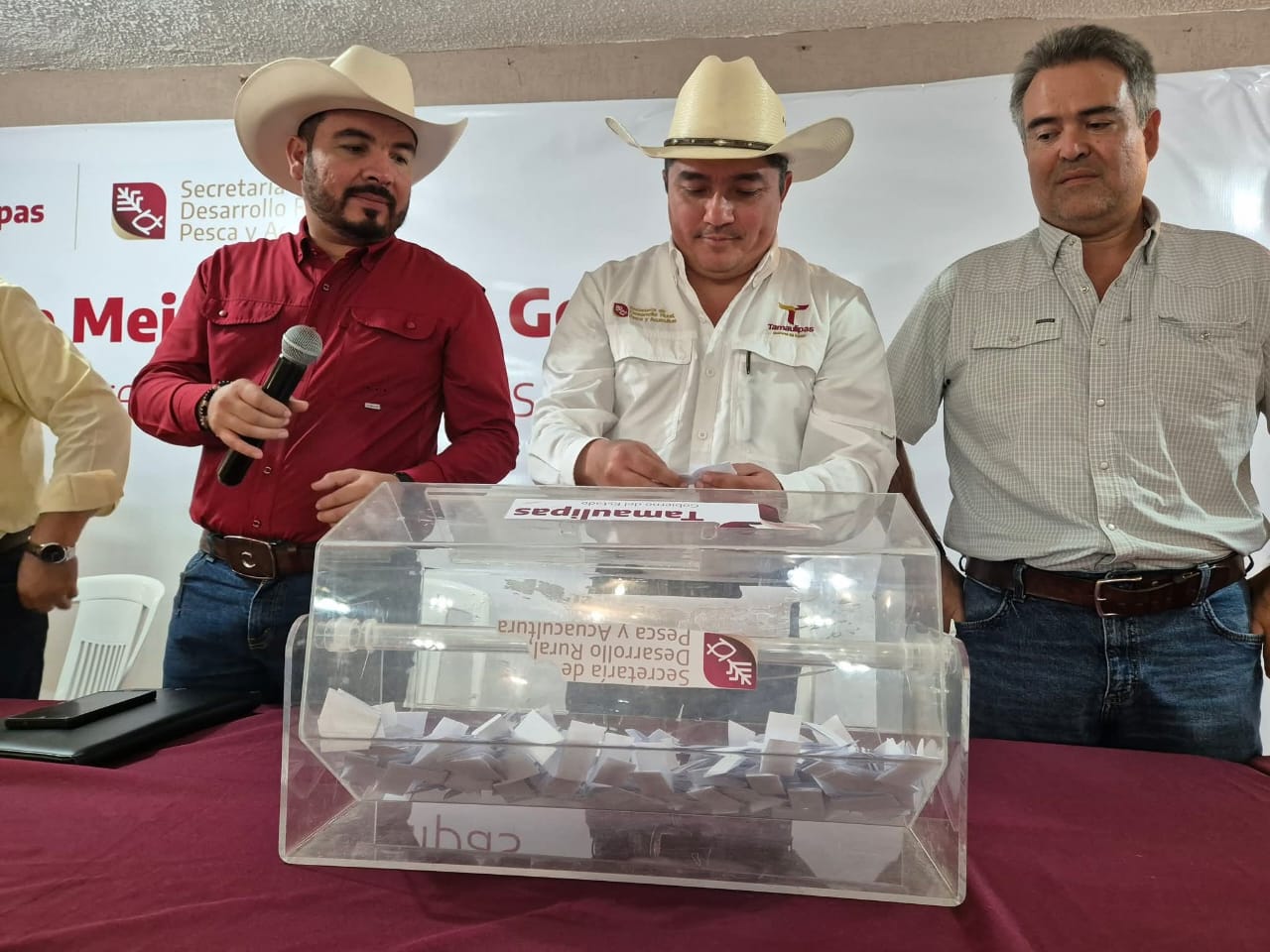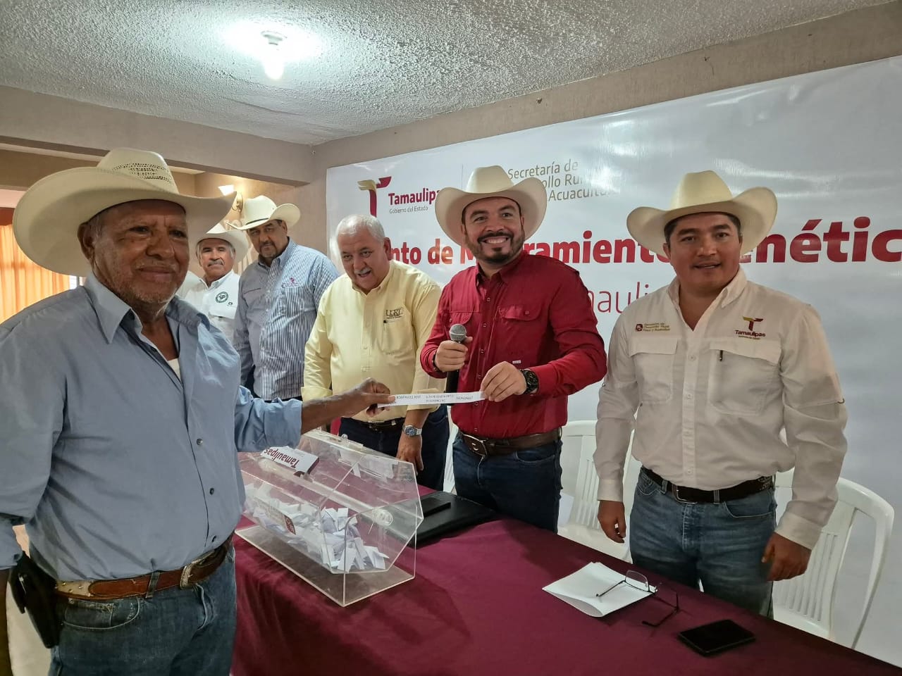 González, Tamaulipas. – En un esfuerzo conjunto para impulsar el sector pecuario, más de 100 toros sementales fueron entregados a igual número de productores ganaderos de González, como parte del programa de mejoramiento genético del Gobierno de Tamaulipas. El evento, que no se realizaba en el municipio desde hace más de una década, fue encabezado por el Dr. Miguel Alejandro Zúñiga Rodríguez, presidente municipal, y el subsecretario de Desarrollo Rural, Cuauhtémoc Amaya.