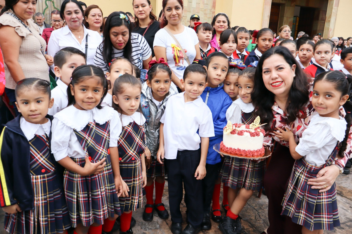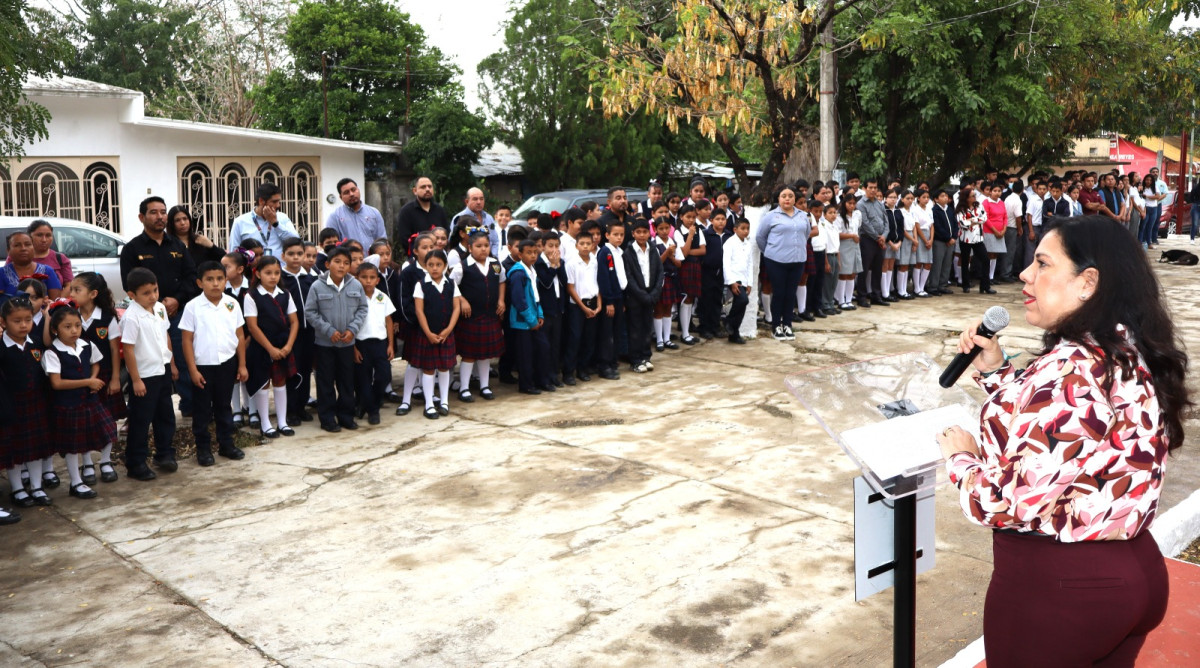Con la asistencia de la comunidad educativa, la estructura de los tres niveles de Gobierno ,cabildo 2024-2027, además de las respetables logias masónicas, Patty Chío encabezó la actividad