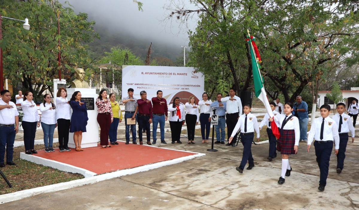 Al conmemorar el CVIII Aniversario de la promulgación de la constitución de 1917, el Gobierno Municipal de El Mante, que representa Patty Chío, encabezó los actos cívicos conmemorativos.