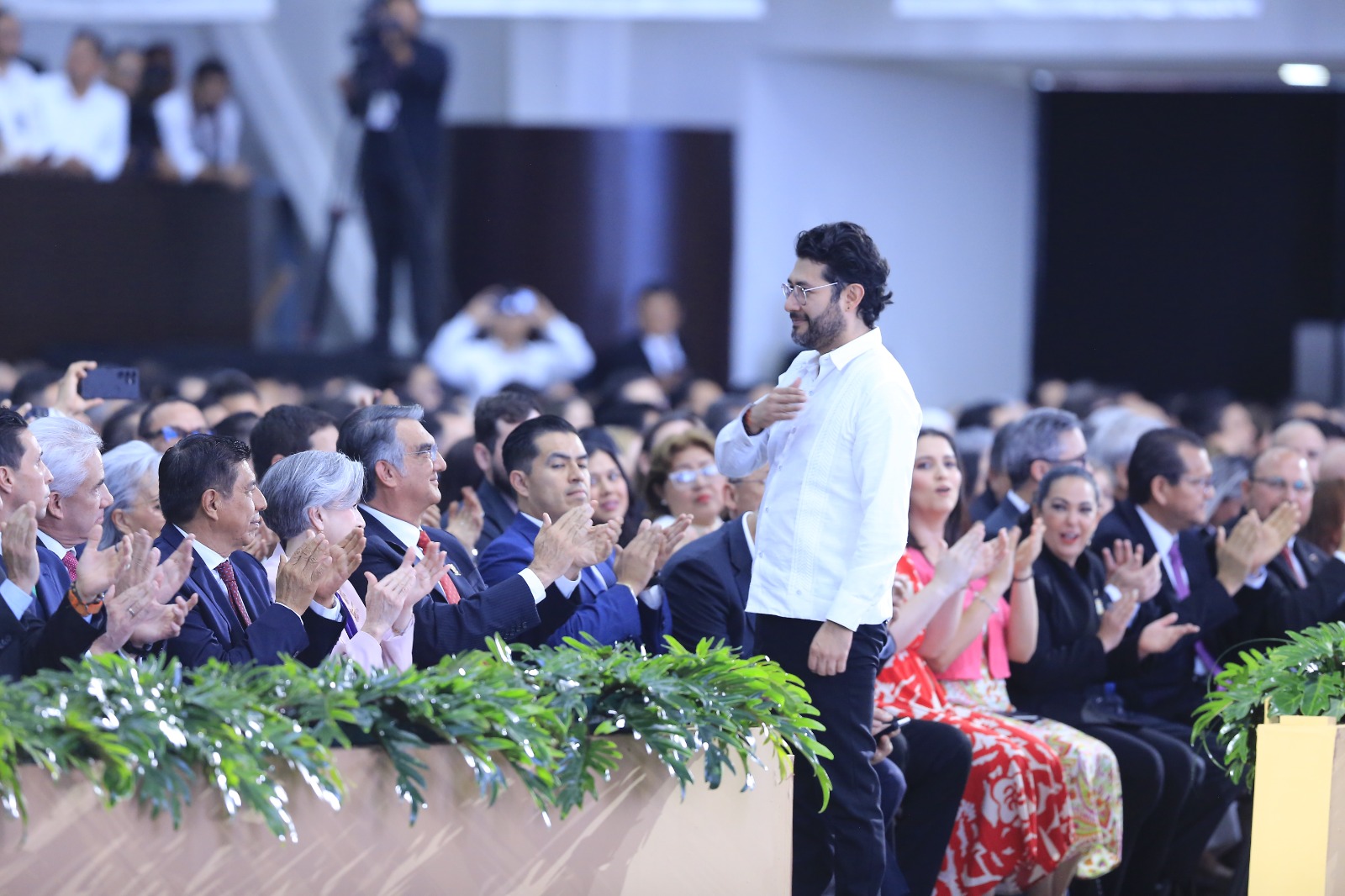 Ante el secretario del Trabajo y Previsión Social, Marath Baruch Bolaños López quien asistió con la representación de la presidenta Claudia Sheinbaum Pardo, el titular del Ejecutivo Estatal aseguró que más allá de las cifras y los indicadores, lo que verdaderamente cuenta son las vidas que cambian, las oportunidades que se abren y la dignidad que se recupera y se logra en sintonía con el proyecto nacional.