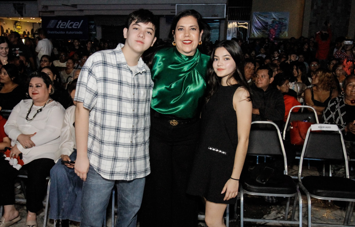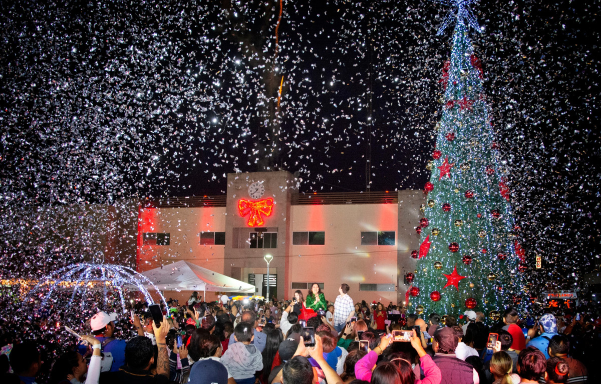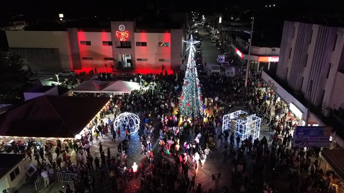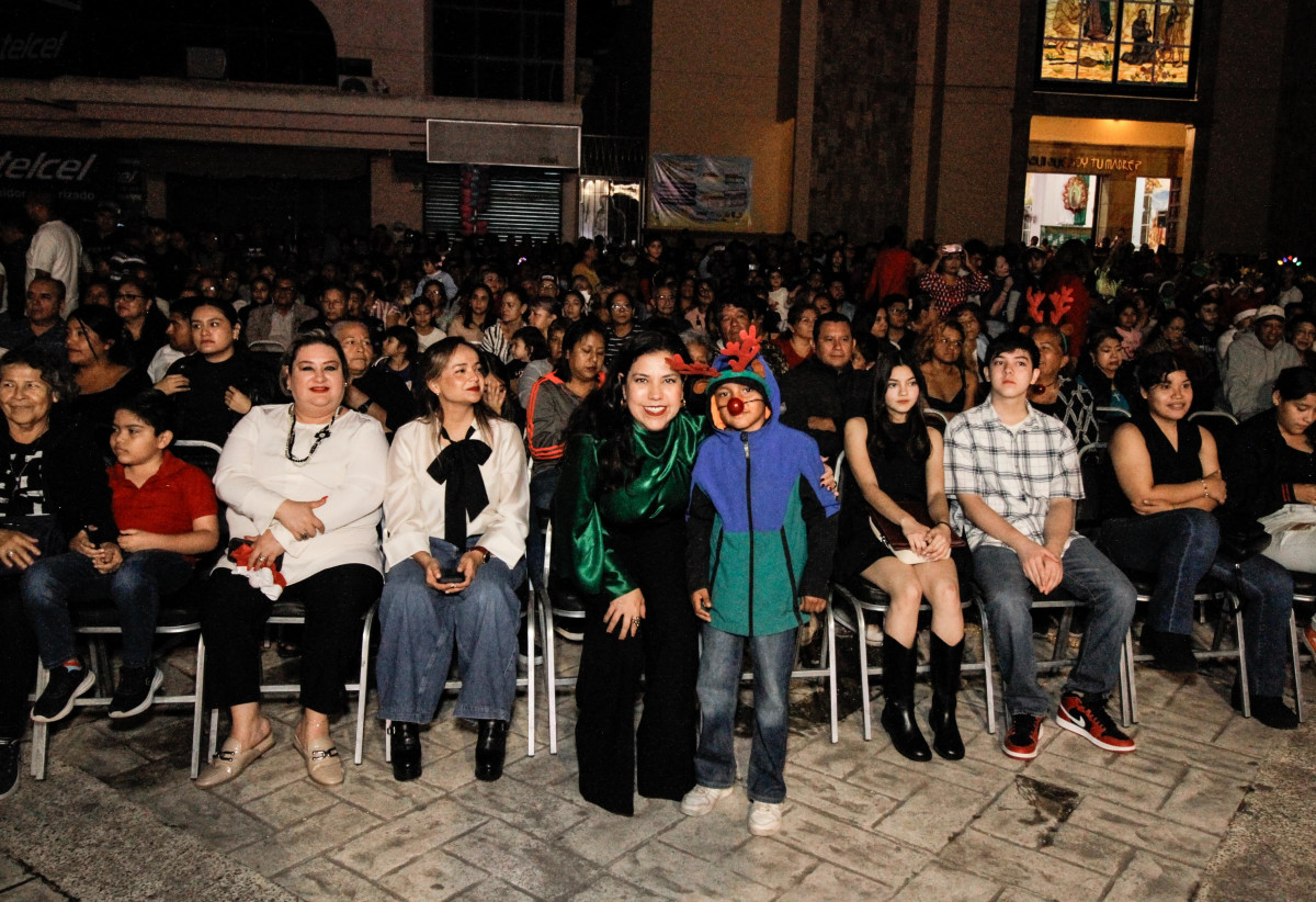 Acompañada por sus hijos, Patty Chío realizó el encendido del pino, junto a la directora del Sistema DIF El Mante Érika Torres Velázquez y el representante del Gobernador Américo Villarreal Anaya, Felipe Alberto Salinas Villasana, representante de la Secretaría General de Gobierno en la zona cañera. Además de Síndicos y regidores .