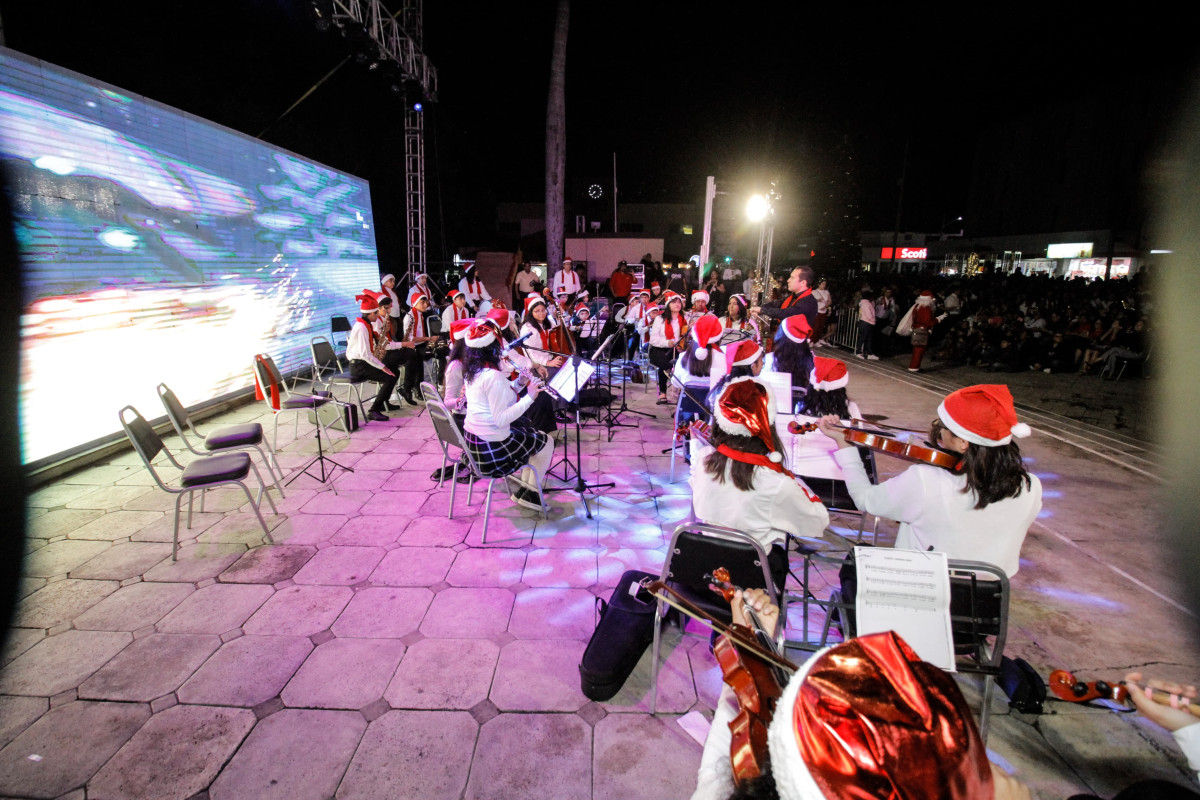 Integrados en una sola familia, mantenses de todas las edades disfrutaron de una noche mágica, acompañada por villancicos,fuegos artificiales y el encendido del pino navideño que realizó la Presidenta Municipal Patty Chío. Integrantes del Gobierno Municipal de El Mante, fueron los anfitriones para que las familias mantenses disfrutaran de una mágica noche.