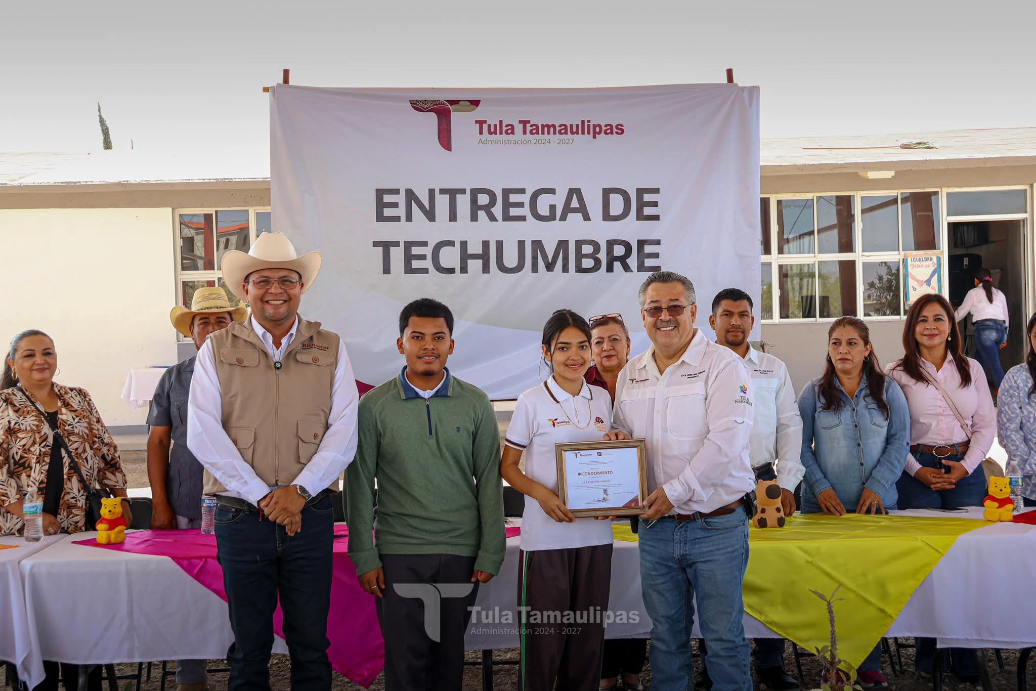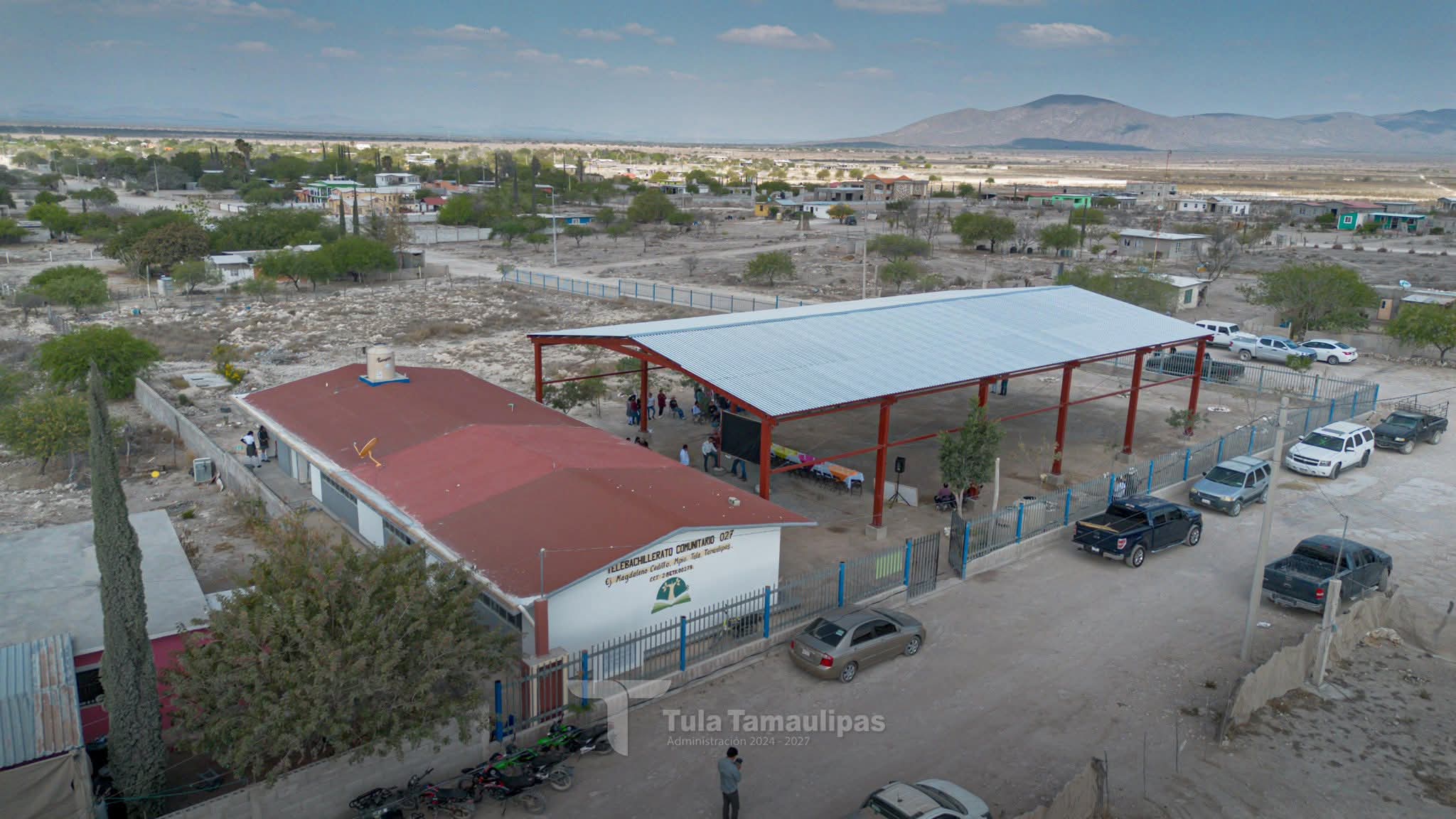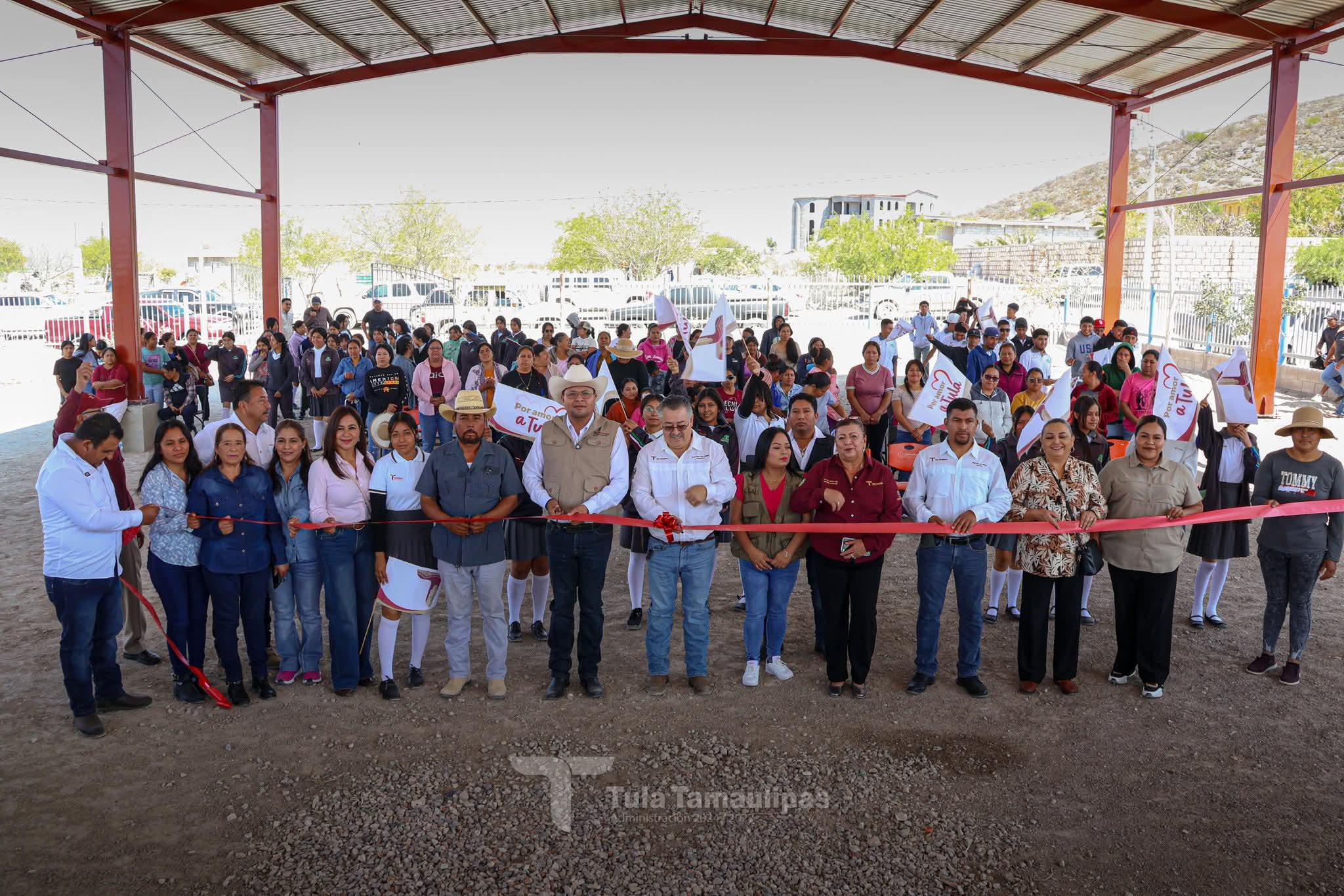 Tula,Tam.-En su reciente gira de trabajo, el presidente municipal René Lara Cisneros realizó la entrega de una importante obra: una techumbre en el Telebachillerato Comunitario 027, ubicado en el ejido Magdaleno Cedillo, mejor conocido como “El Coronel”.