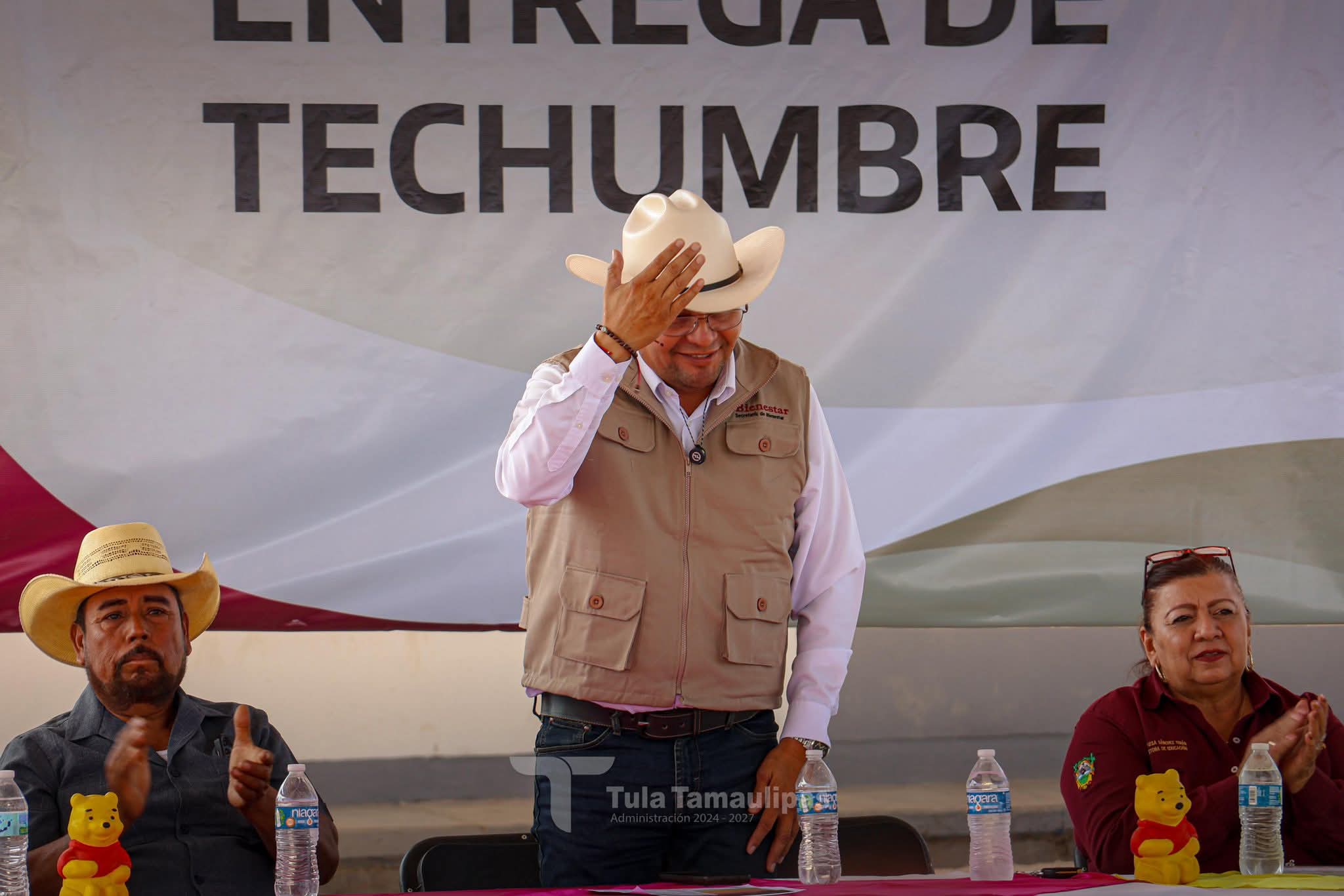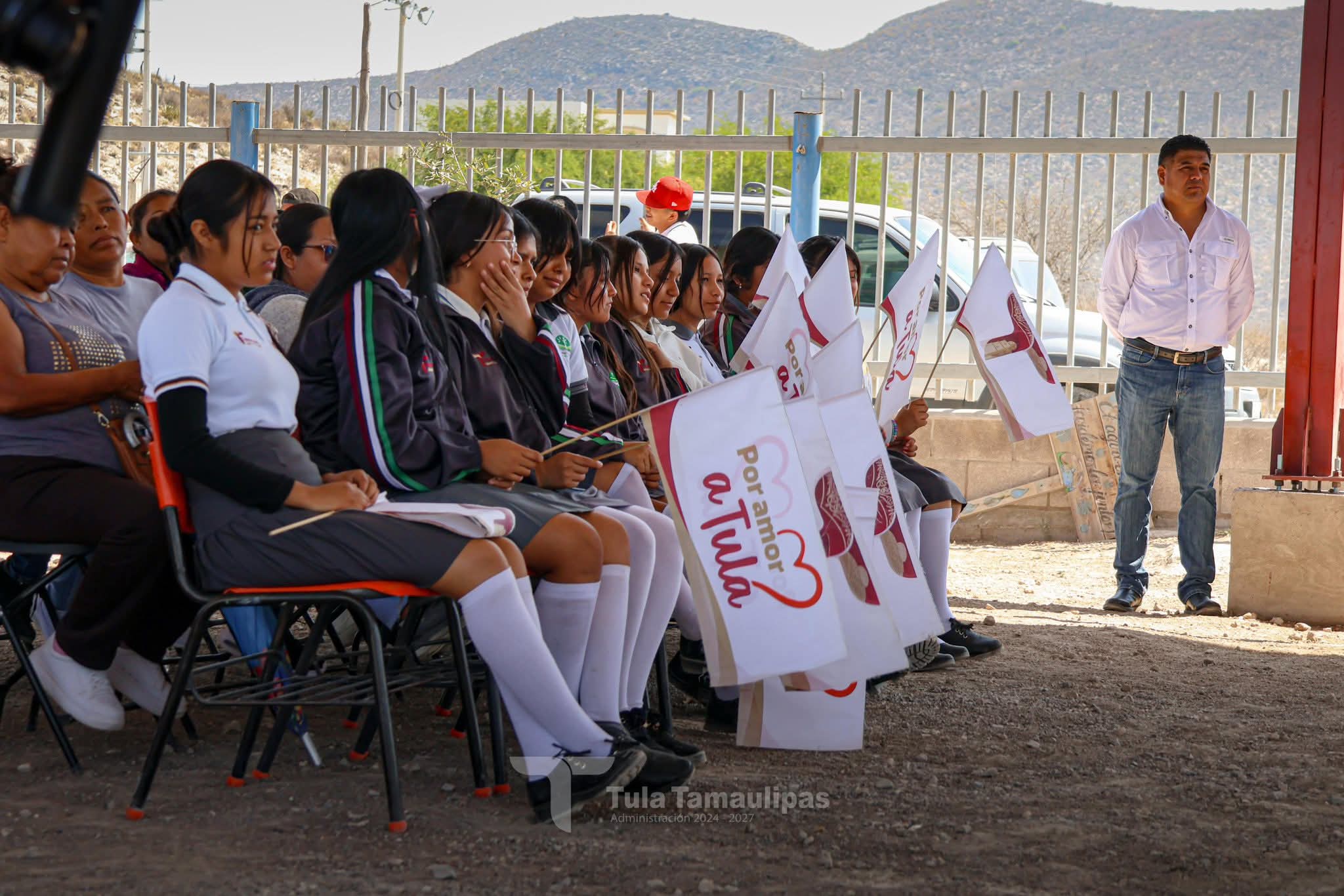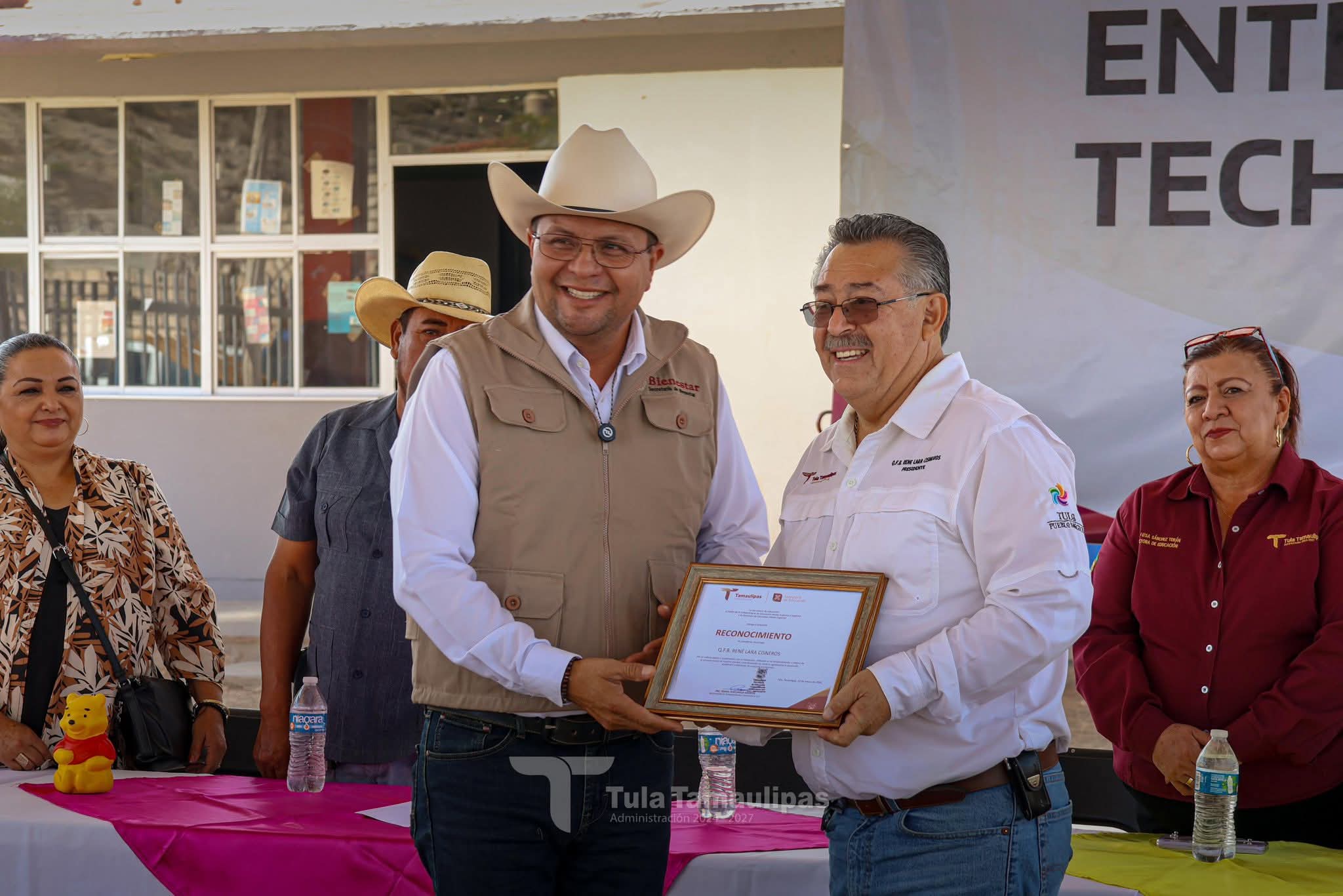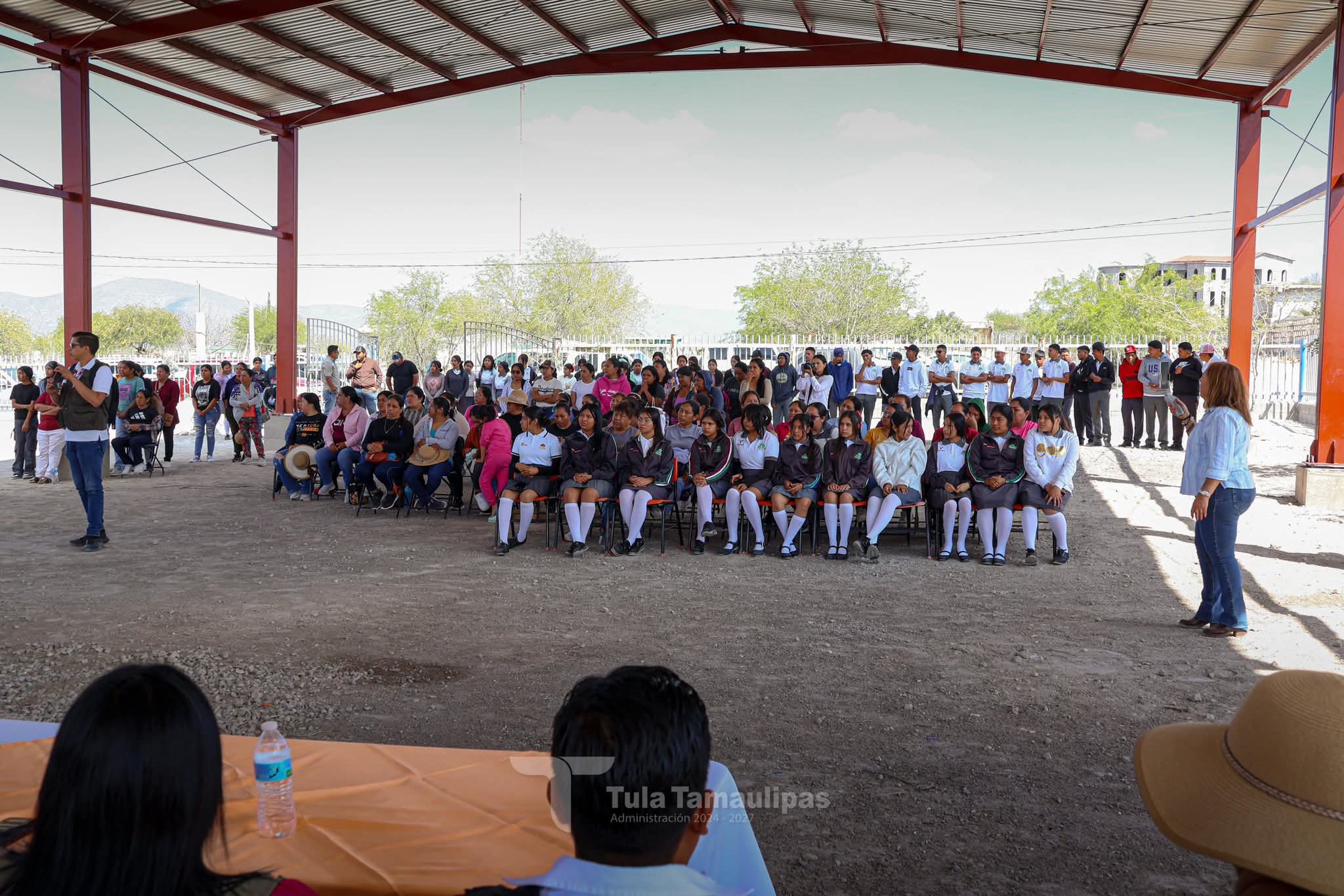 Tula,Tam.-En su reciente gira de trabajo, el presidente municipal René Lara Cisneros realizó la entrega de una importante obra: una techumbre en el Telebachillerato Comunitario 027, ubicado en el ejido Magdaleno Cedillo, mejor conocido como “El Coronel”.