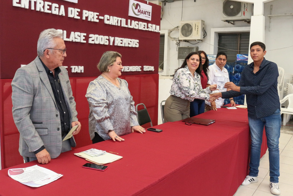 Acompañada por el Jefe de la Junta Municipal de Reclutamiento, Carlos Márquez Quilpas y la Secretaria del Ayuntamiento Benilde Elizabeth Molina Mejía, Patty Chío reconoció el cumplimiento de los jóvenes mantenses en el procedimiento solicitado ante la Secretaría de la Defensa Nacional y estar en proceso para su liberación de dicho documento.