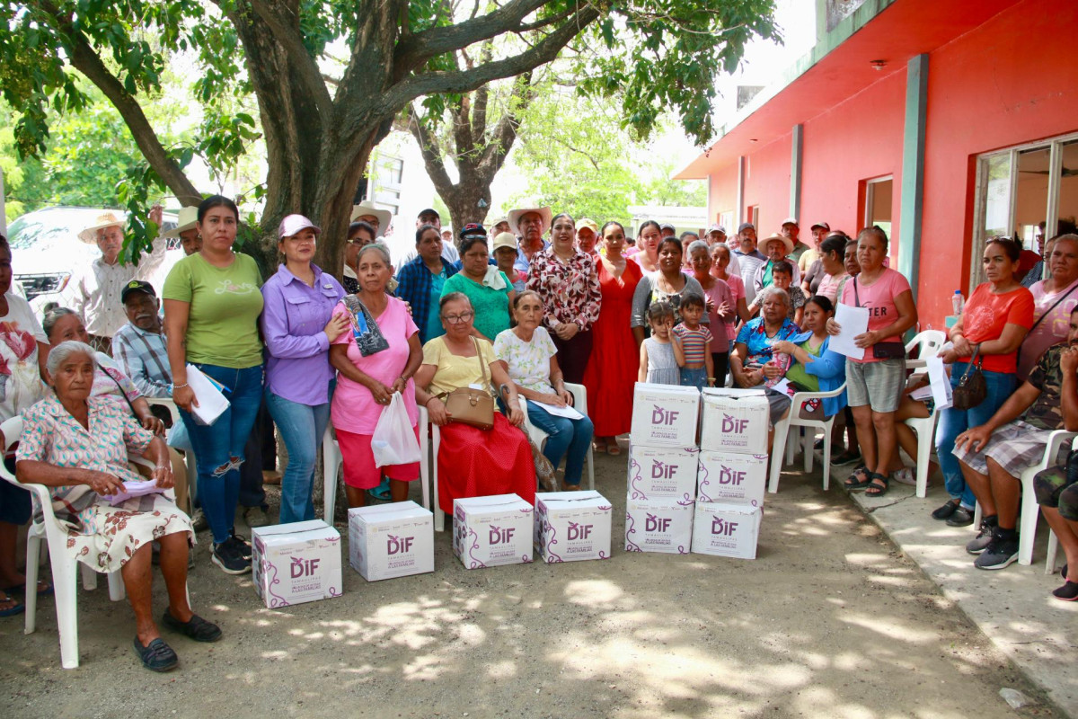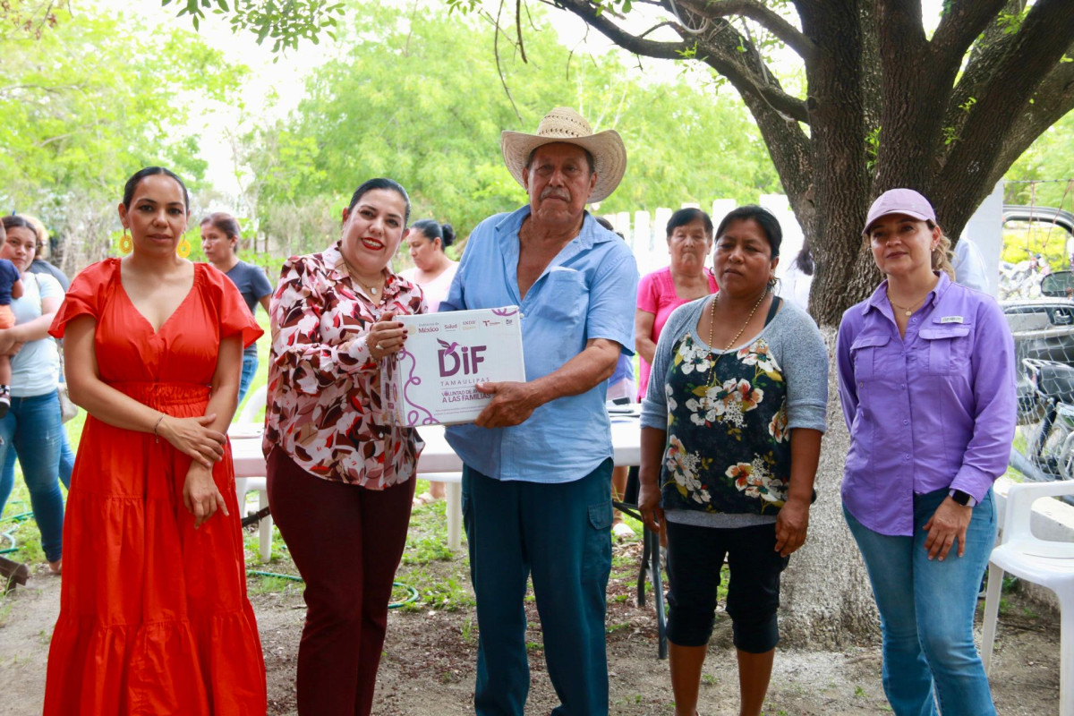 Beneficiarios del padrón estatal que habitan en la zona temporalera, recibieron la dotacion que de manera directa entregó la Presidenta Municipal Patty Chío en los ejidos Tantoyuquita, Los Aztecas, Magdaleno Aguilar y División del Norte.