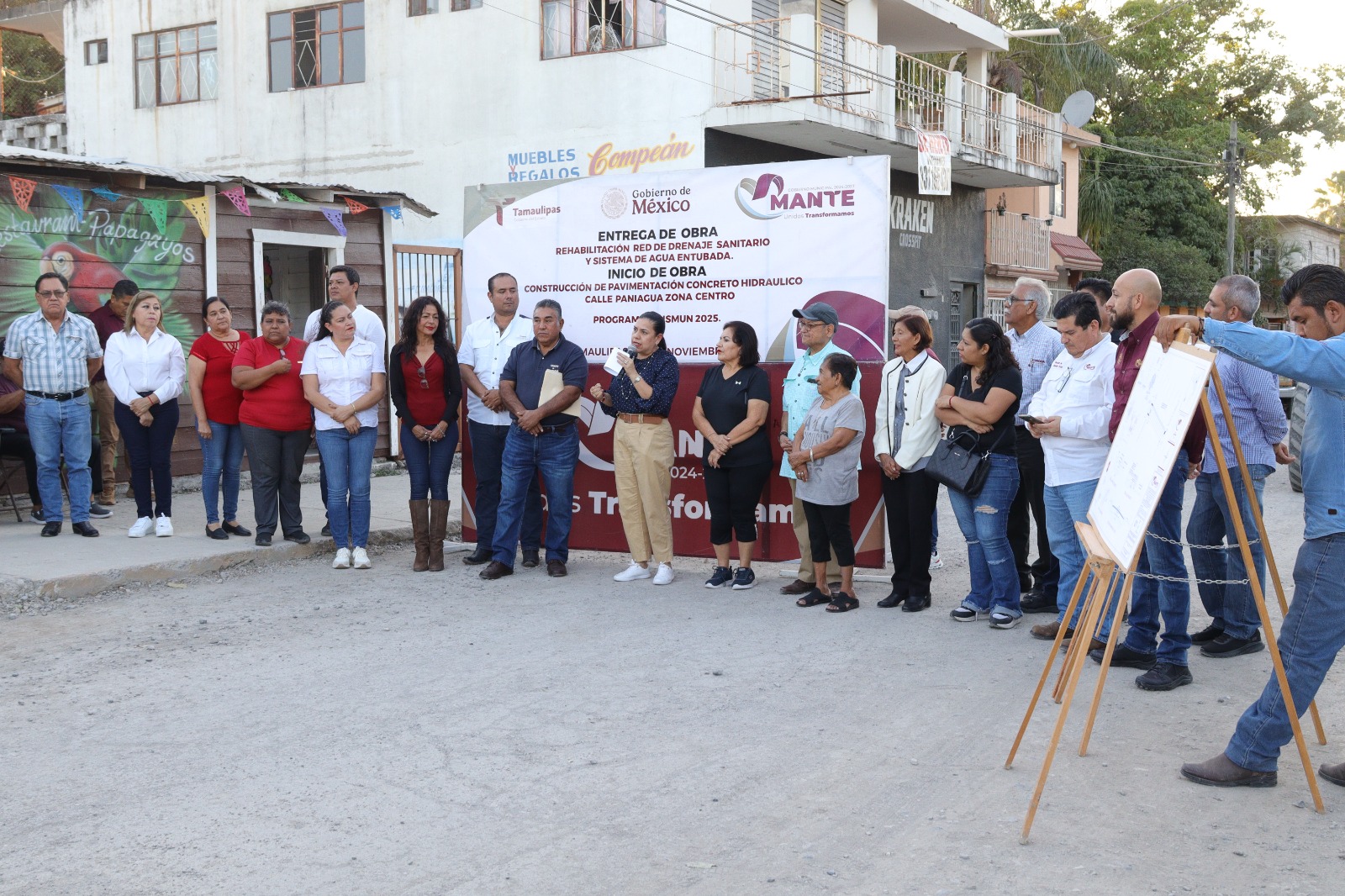 La Presidenta Municipal encabezó la entrega de la primera etapa de la obra de la calle Paniagua, donde se llevaron a cabo trabajos de introducción de drenaje sanitario y reposición de tomas de agua potable, acciones fundamentales para mejorar los servicios básicos de esta zona.