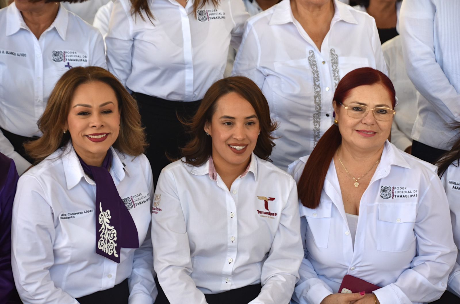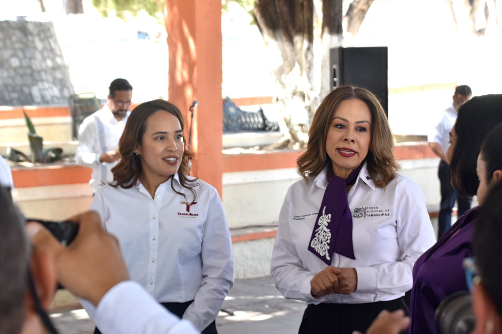 Roxana Guerrero Galván, directora general del IDPET, participó como testigo de honor acompañando a la magistrada presidenta del Supremo Tribunal de Justicia del Estado de Tamaulipas, Tania Gisela Contreras López, en este acto que formaliza la cooperación institucional con los gobiernos municipales de Jaumave, Palmillas, Bustamante y Miquihuana.