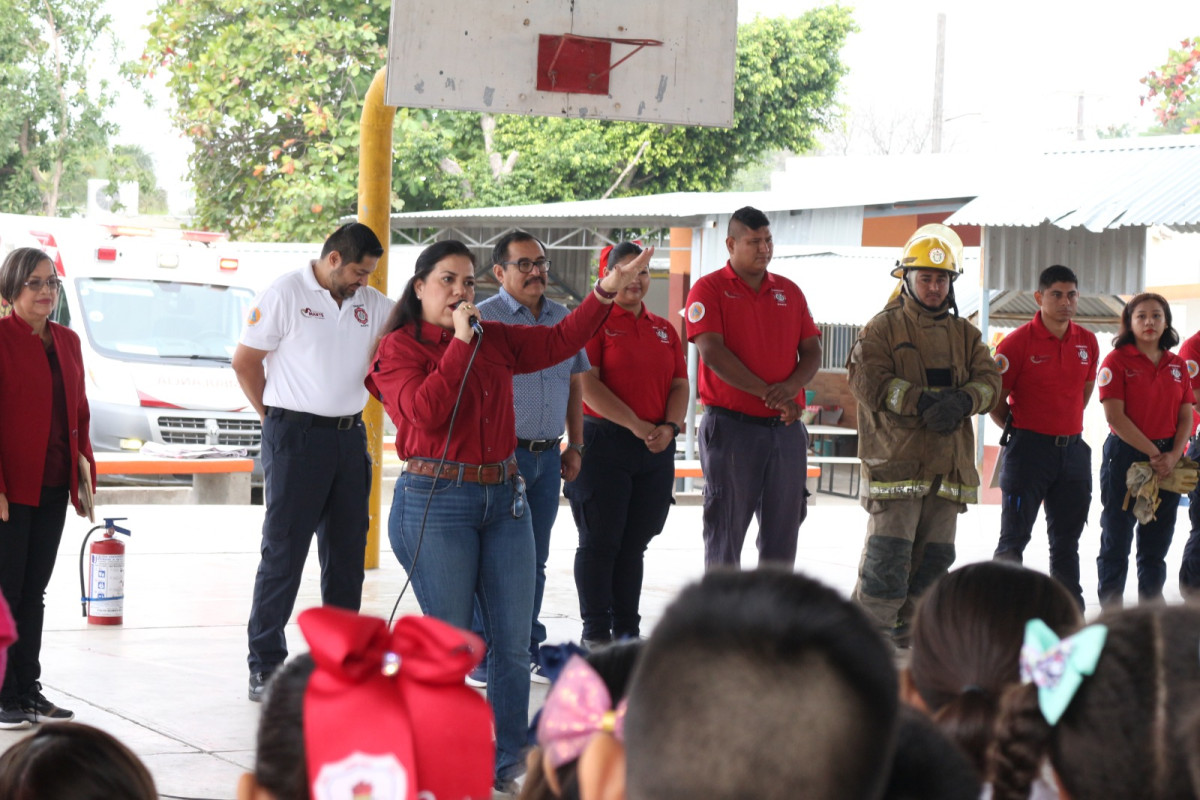 En atención a la invitación hecha por la Dirección de Protección Civil en el municipio, la presidenta Municipal Patty Chío visitó la Escuela Primaria Enrique Rodríguez Cano, para acompañar a Edgar Ayala Calderón, en el acercamiento con los niños y niñas de la escuela Primaria Enrique Rodríguez Cano, con el objetivo de fomentar la cultura de la prevención.