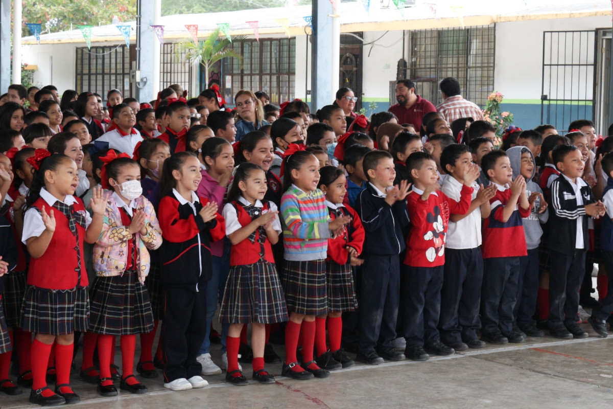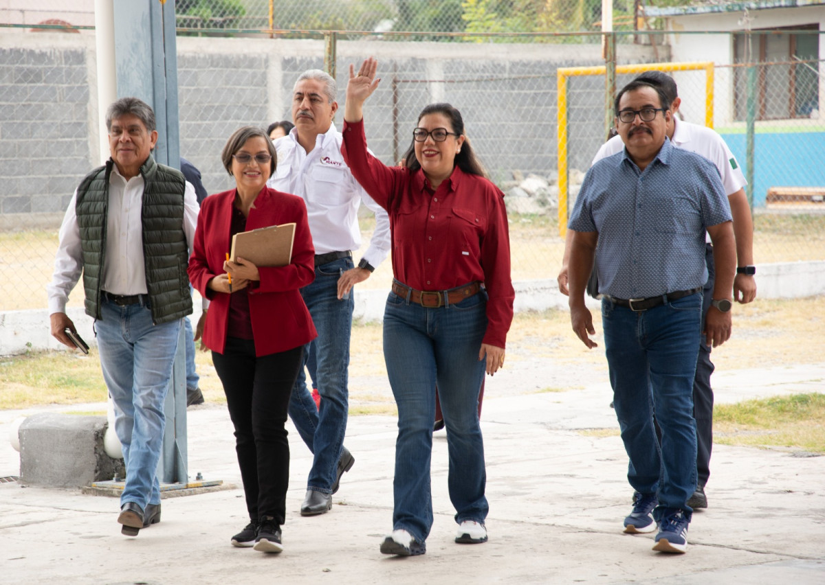 Con entusiasmo, los estudiantes recibieron a la presidenta, acompañados por la directora del plantel, Blanca Estela Gómez Sáenz y el supervisor de la zona; Rubén Urrutia Lerma, quienes dieron la bienvenida a la presidenta.