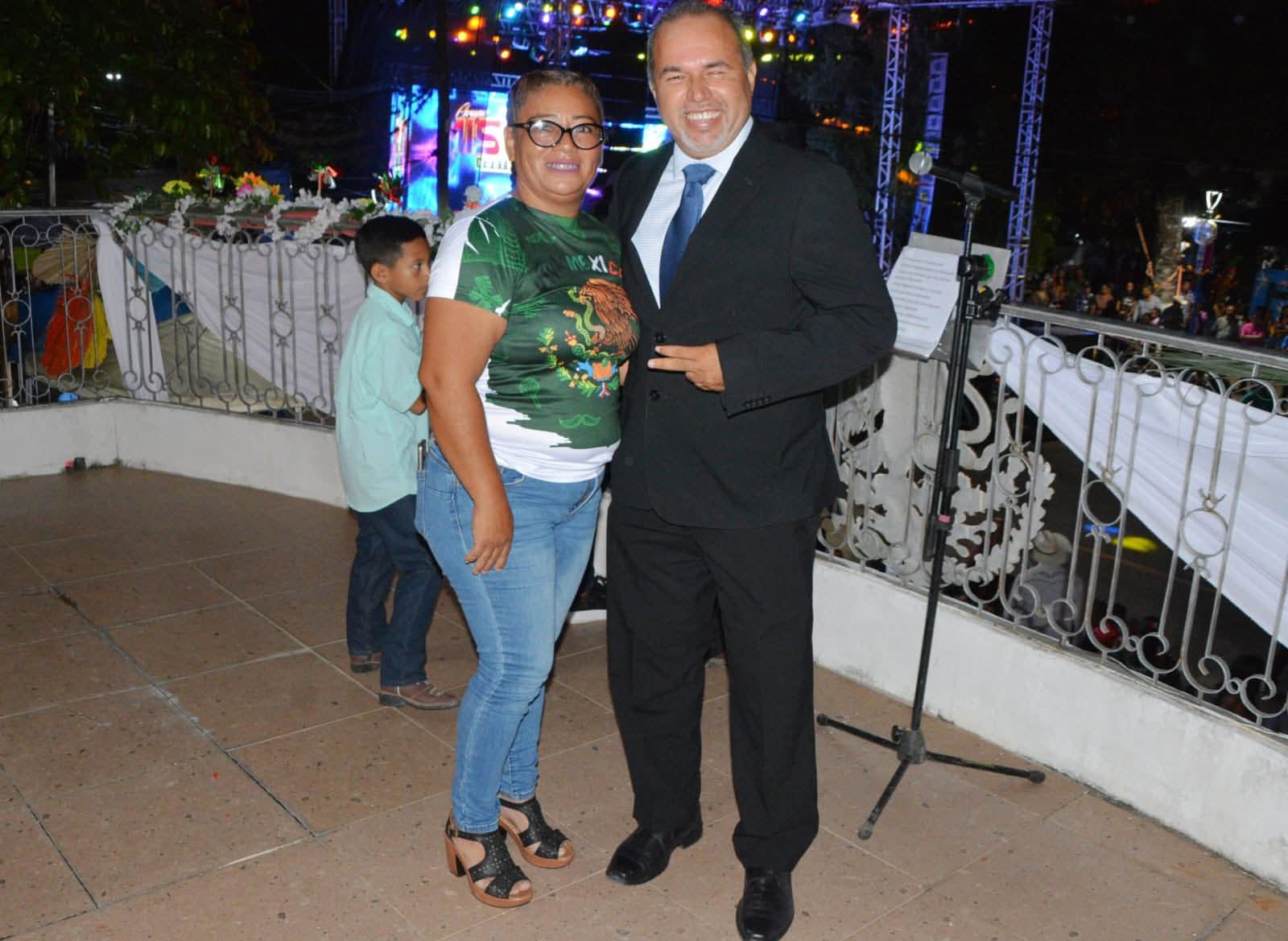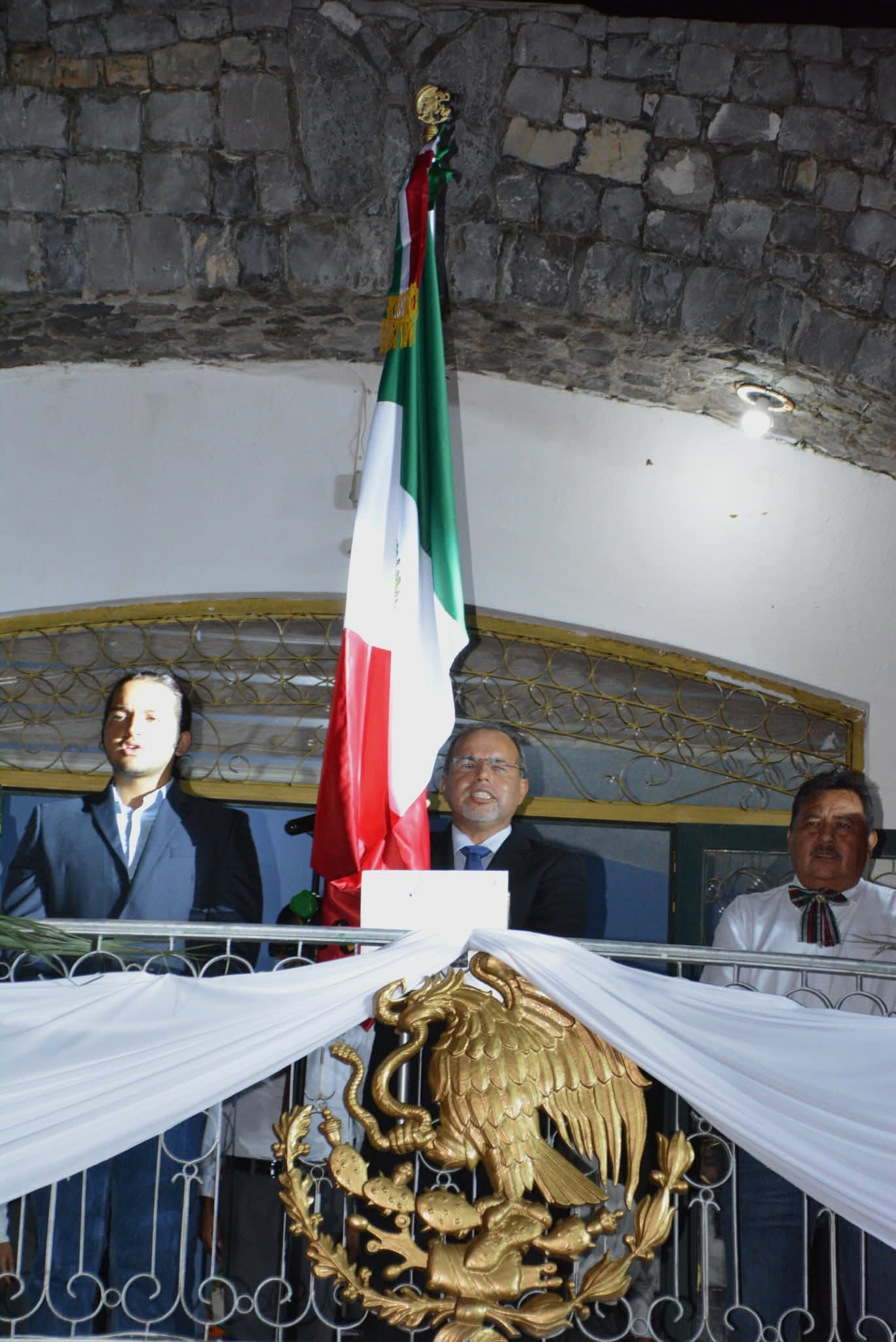 El presidente Frank de León , estuvo puntual a la cita en el balcón del palacio municipal, junto con la Sindico y regidores, funcionarios, la familia del alcalde para gritar a voz en pecho, la arenga que el cura, Miguel Hidalgo pronunció en el pueblo de Dolores la noche del 15 de septiembre de 1810.