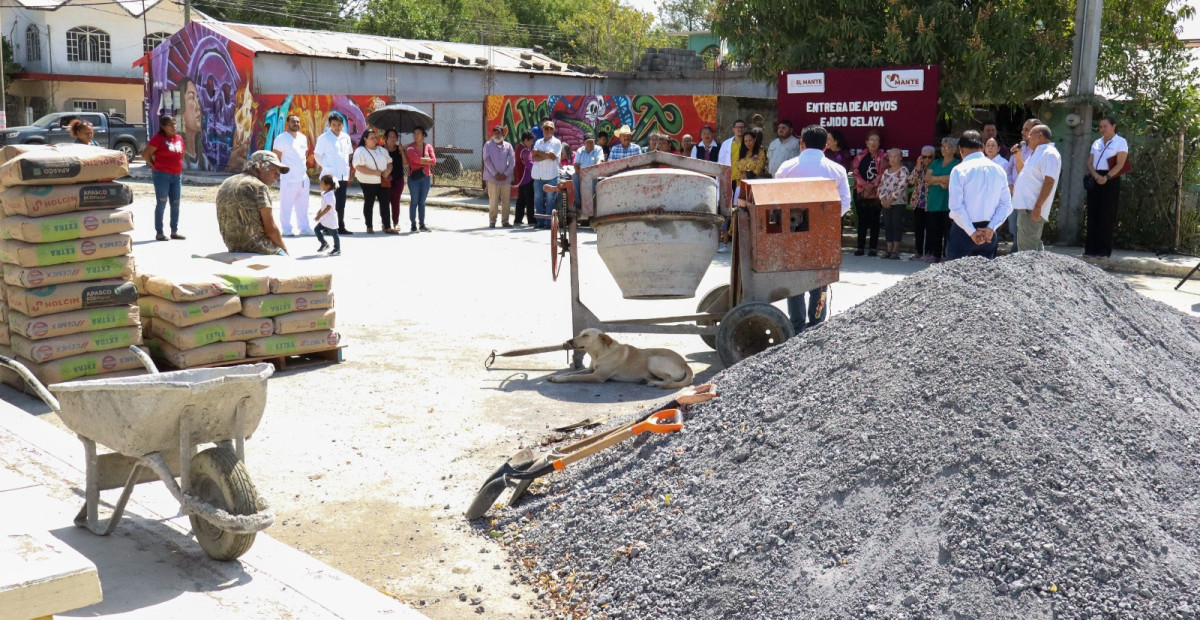 En apego al ideal de trabajar en equipo y respondiendo a las peticiones hechas por la comunidad de Celaya, la Presidenta Patty Chío hizo entrega de cemento para la rehabilitación de la plaza principal.
