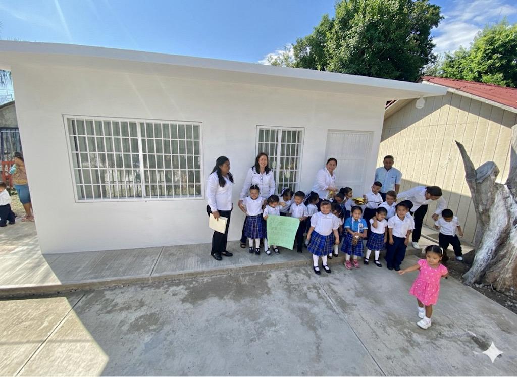 La construcción de esta aula fue posible gracias a las gestiones realizadas por la alcaldesa ante instancias estatales y municipales, consolidando un espacio digno y funcional para los pequeños estudiantes de nivel preescolar.