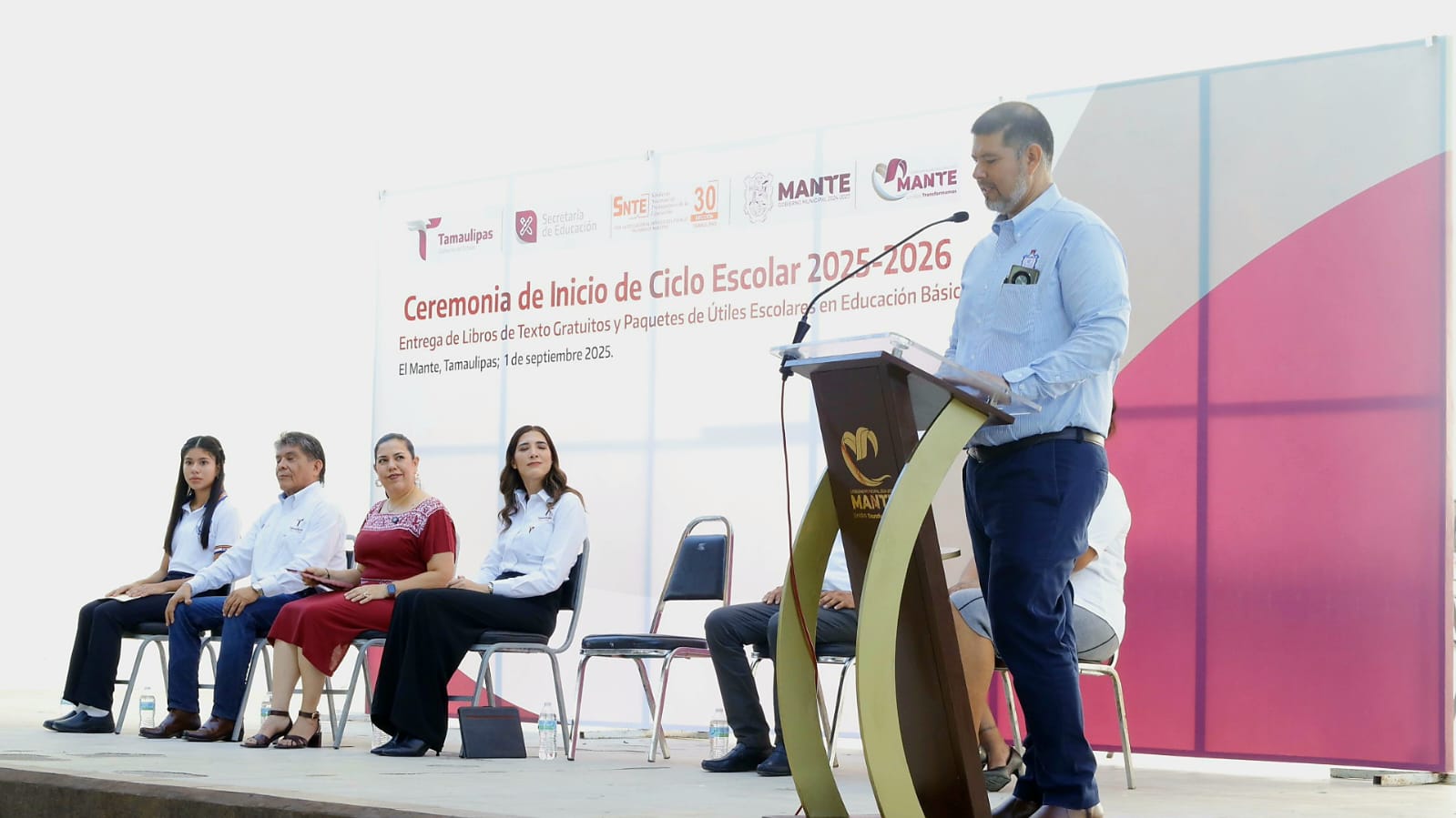 El anfitrión del evento Guillermo García Ruiz director de la Escuela Secundaria 3, dio la bienvenida a las autoridades presentes, destacando el compromiso que existe para enfrentar los desafíos que conlleva el ser una de las instituciones educativas con mayor alumnado en El Mante.