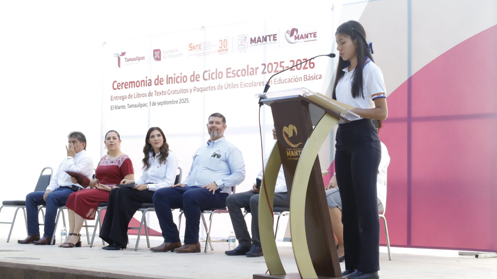 La representante del Gobernador Anabell Flores Garza precisó que con la suma de acciones que realiza desde el Gobierno de Tamaulipas con el Gobierno Federal con la Doctora Claudia Sheinbaum y en municipios como El Mante que se transforma en infraestructura educativa y estímulos al desempeño educativo de los estudiantes.