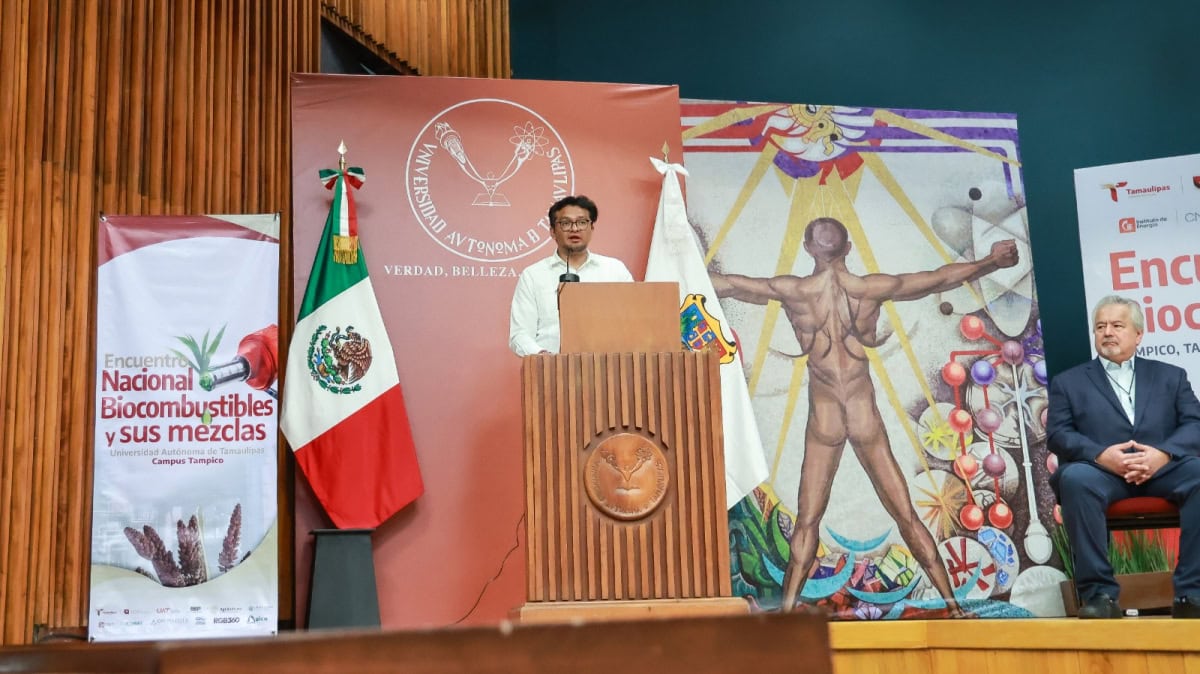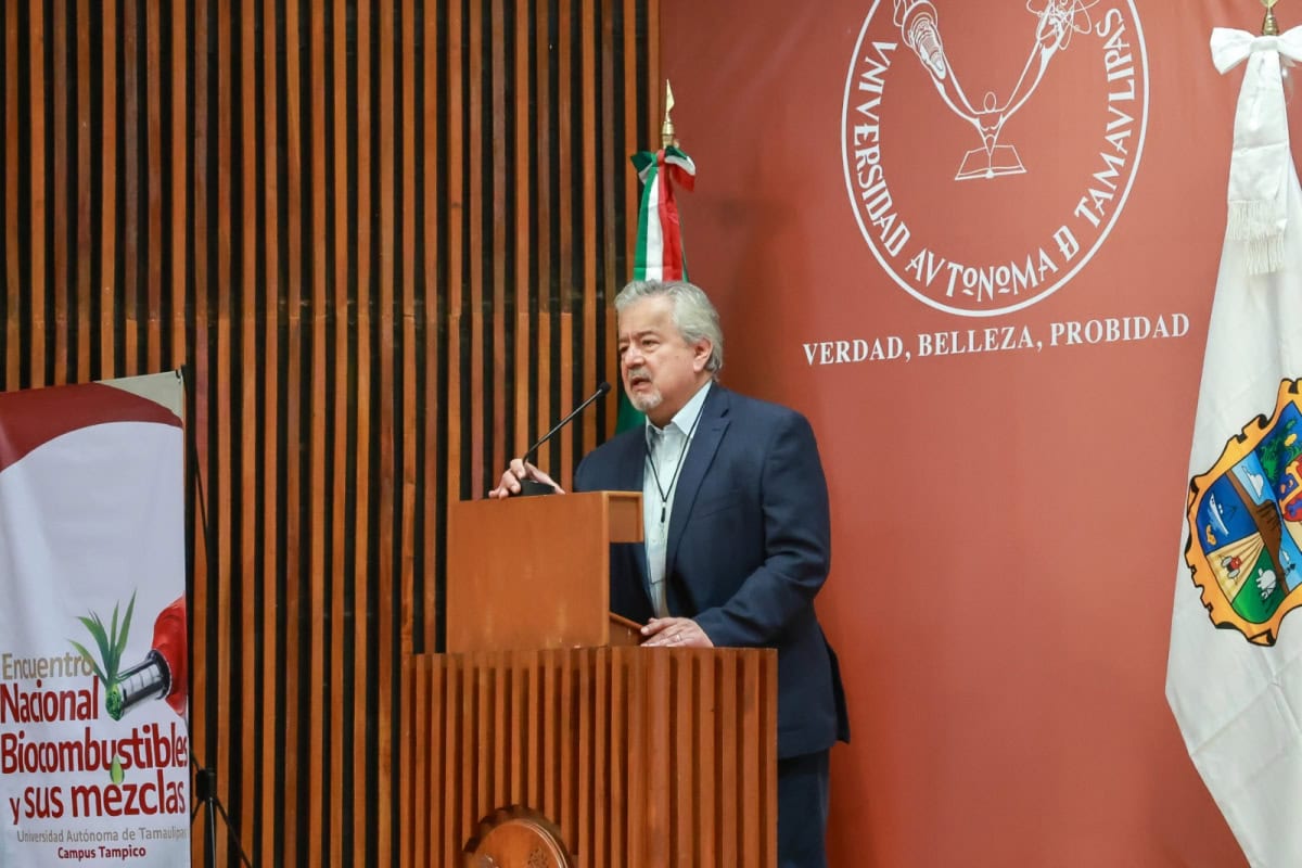 Tampico, Tamaulipas.- El titular de la Secretaría de Desarrollo Energético de Tamaulipas, Walter Julián Ángel Jiménez, junto con el director general técnico de la UAT, Roberto Campos Leal, inauguraron el primer “Encuentro Nacional de Biocombustibles y sus Mezclas” en la Universidad Autónoma de Tamaulipas, campus Tampico.