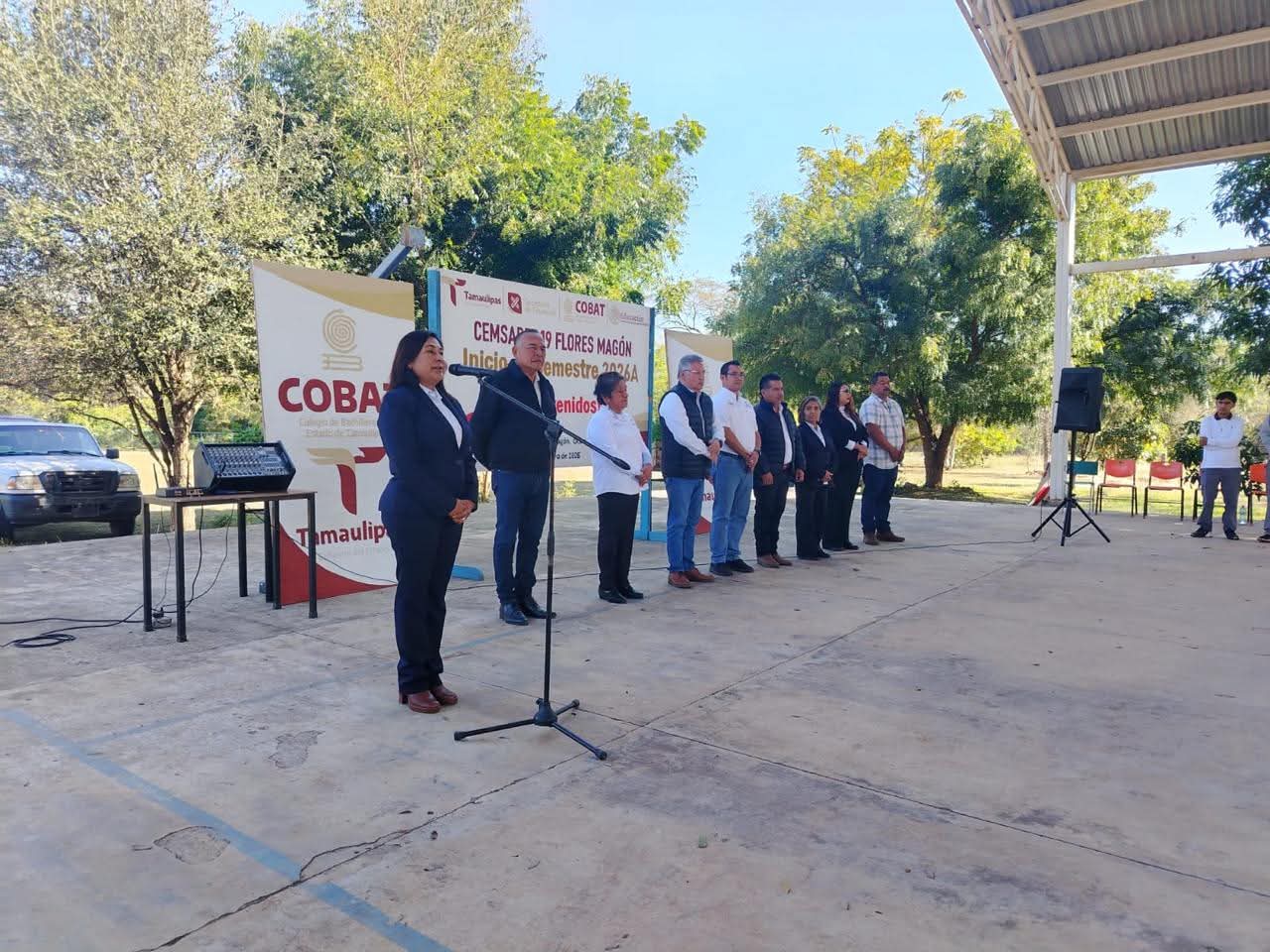 Ocampo,Tam.-Con el firme compromiso de impulsar la educación y fortalecer los valores cívicos entre la juventud, el alcalde C.P. Melchor Budarth Báez fue invitado a dar inicio al nuevo semestre en el CEMSADET 19, ubicado en el Ejido Ricardo Flores Magón.