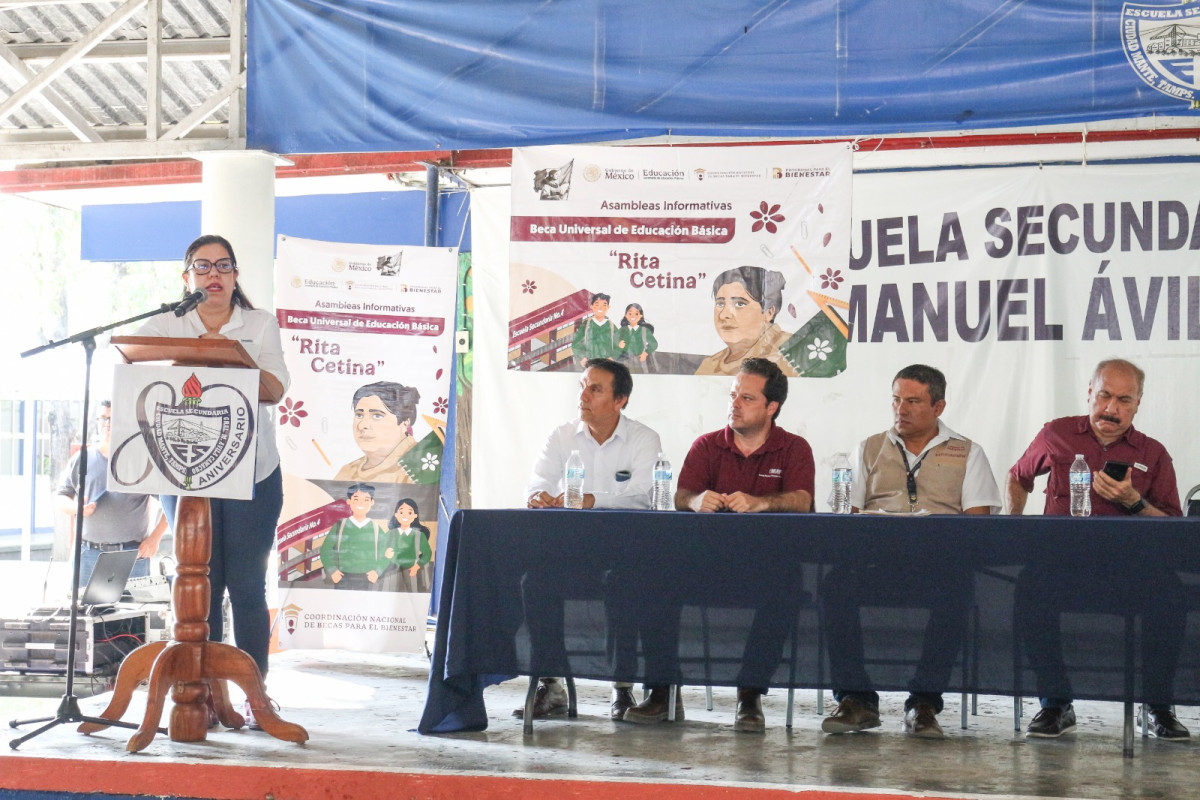 «Se les va a ayudar a que cumplan con este proceso, queremos que todos los alumnos puedan recibir su beca universal y continúen con sus estudios; así es como trabaja el Gobierno que encabeza la Dra. Claudia Sheinbaum y nuestro Gobernador Américo Villarreal Anaya «.