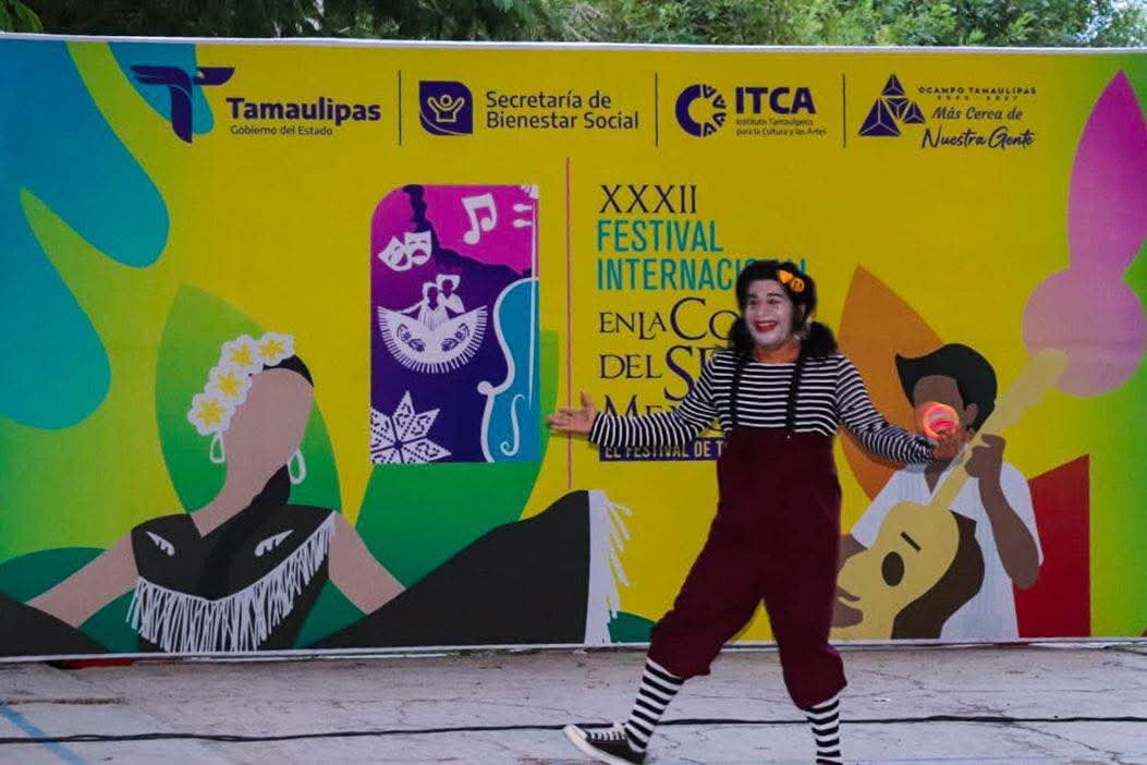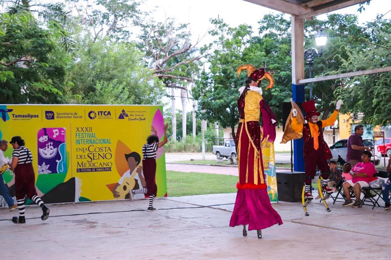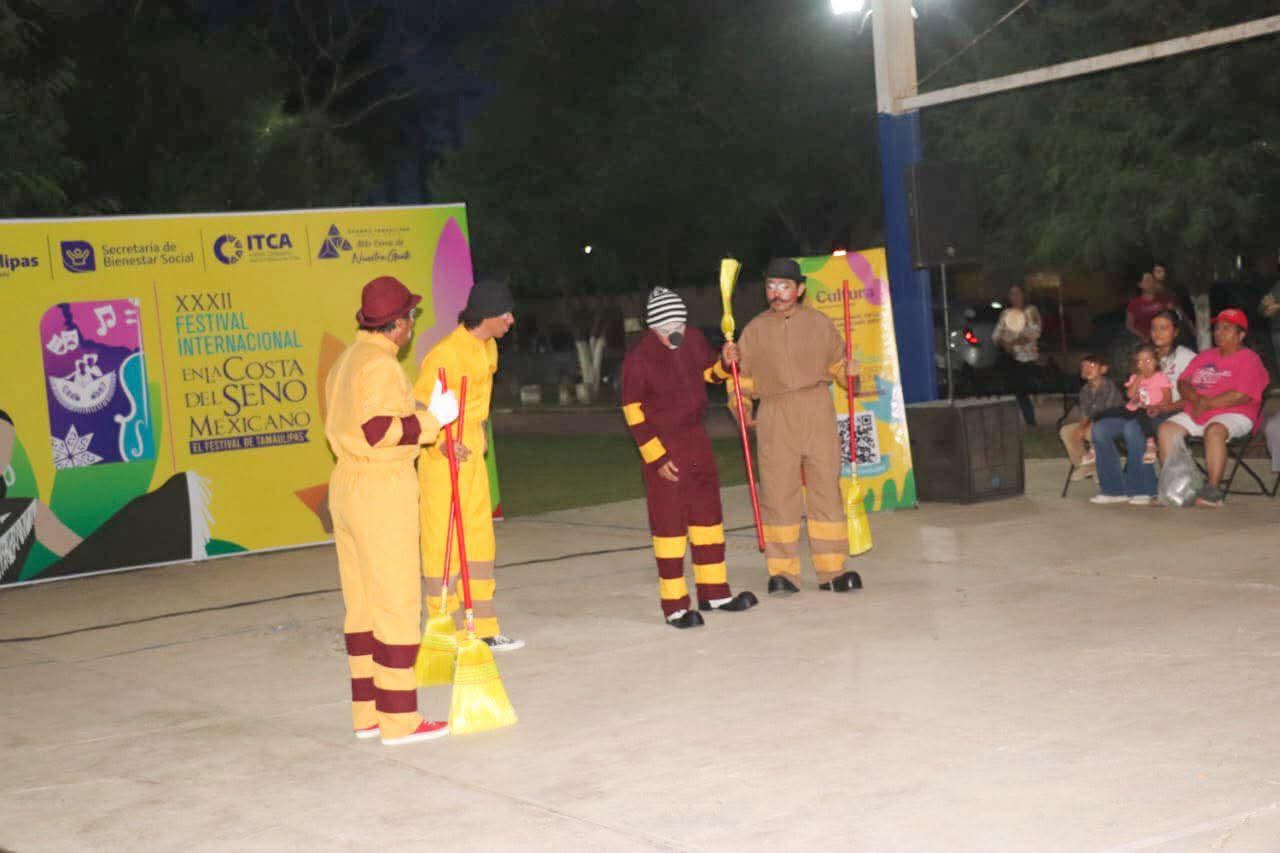 Ocampo,Tam.-En el marco del Festival Internacional en la Costa del Seno Mexicano,el municipio se llenó de color, energía y sonrisas con la presentación del Colectivo Trueque, Zanqueros, mimos y artistas escénicos hicieron vibrar al público con un espectáculo lleno de creatividad y emoción, llevando un mensaje de unión, arte y cultura a cada rincón de la comunidad.