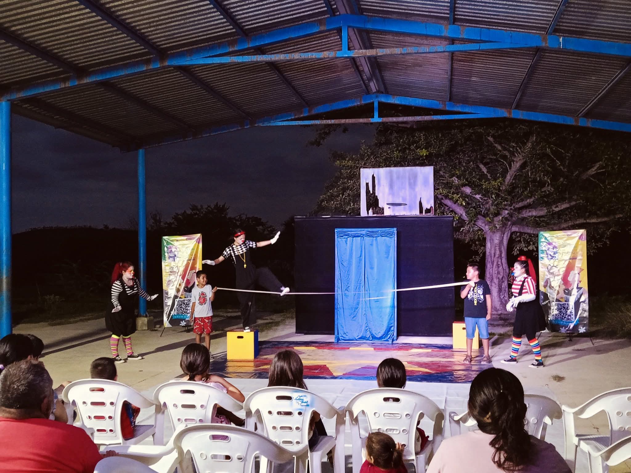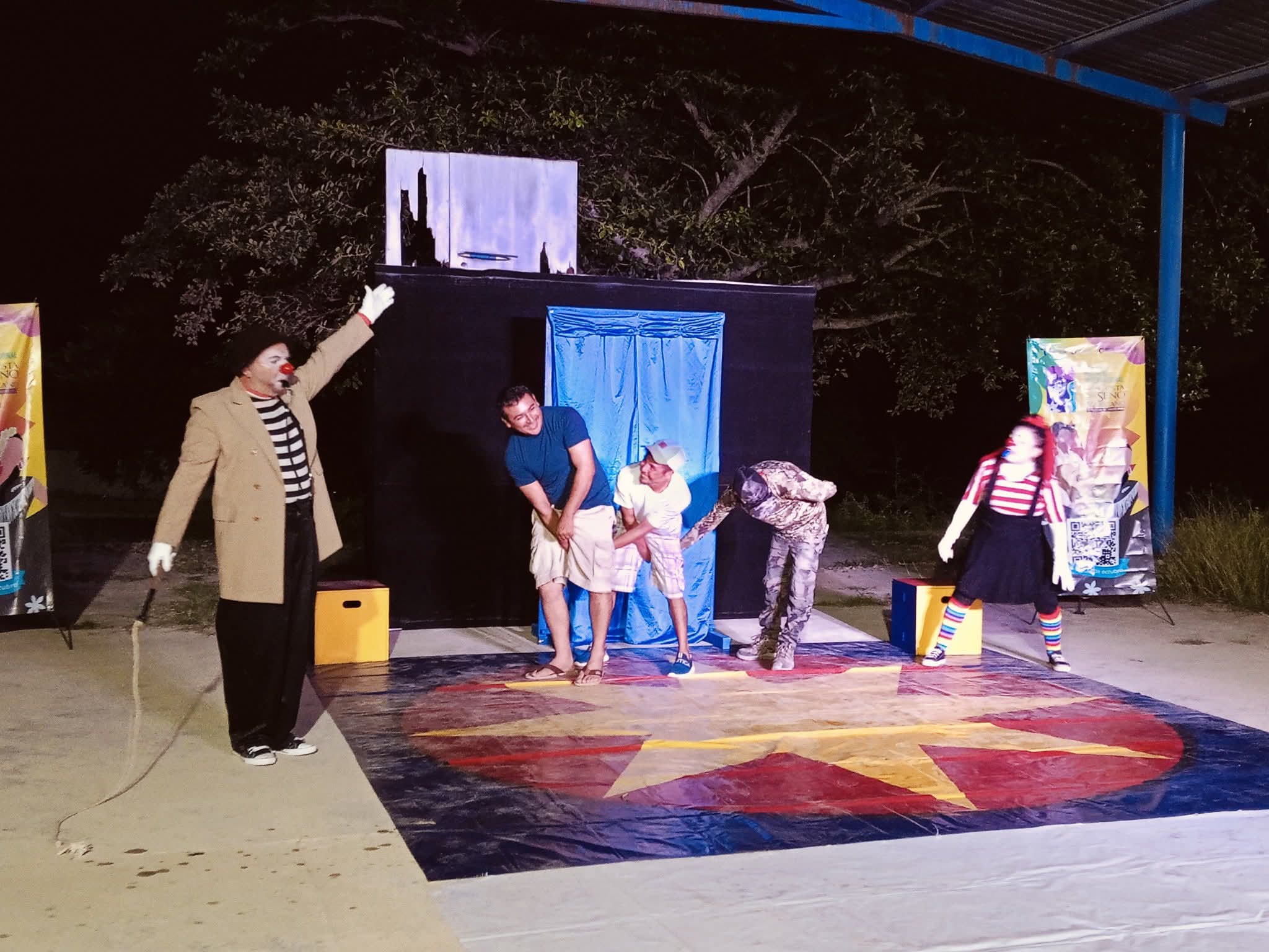 Nuevo Morelos,Tam.-Esta tarde, el Ejido Ampliación La Reforma fue testigo de un emotivo y vibrante momento cultural con la presentación de la obra “Con las manos entre los pies”, a cargo del grupo Espejos, como parte de la 32ª edición del Festival Internacional de la Costa del Seno Mexicano.