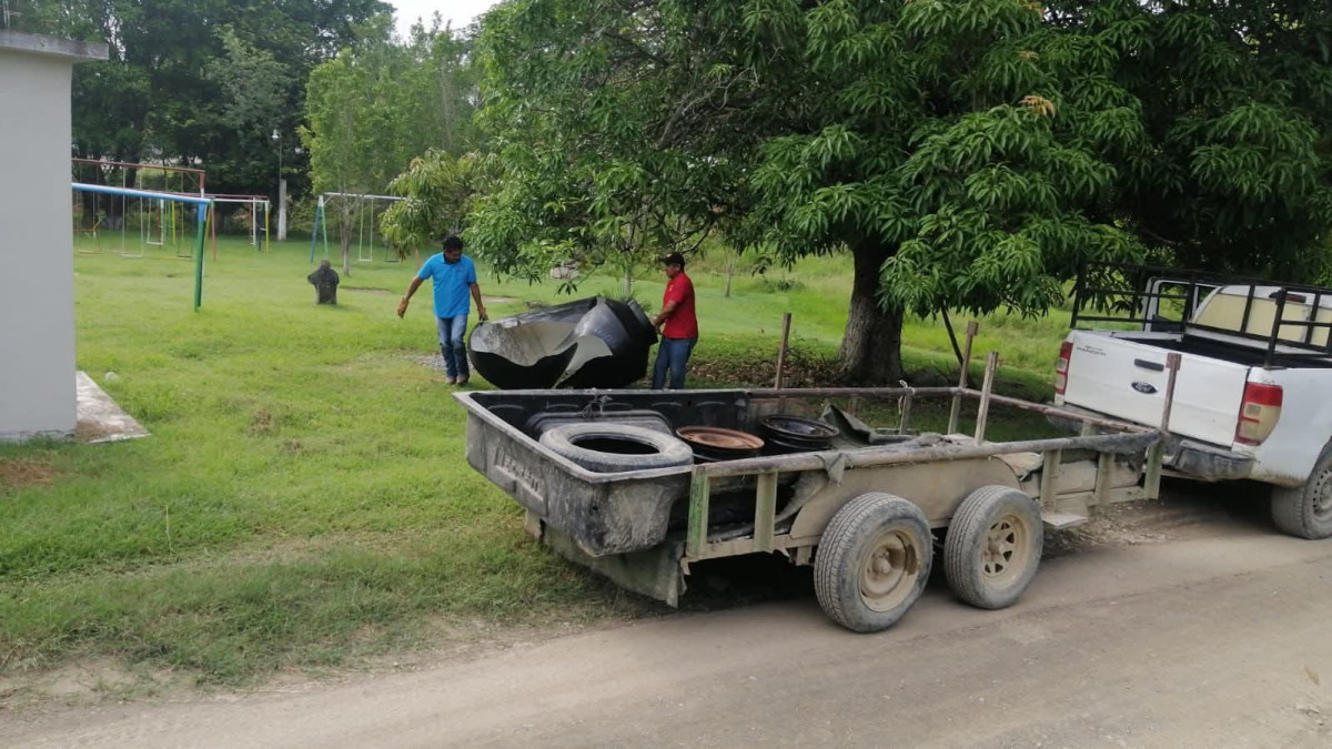 Nuevo Morelos,Tam.-El Ayuntamiento de Nuevo Morelos, comprometido con el bienestar de sus habitantes, continúa reforzando acciones preventivas en materia de salud pública. A través del área de Protección Civil, y en coordinación con el personal de Vectores de la Jurisdicción Sanitaria Mante, se intensifican los trabajos de recolección de cacharros y abatización, como parte de la campaña impulsada por la alcaldesa.